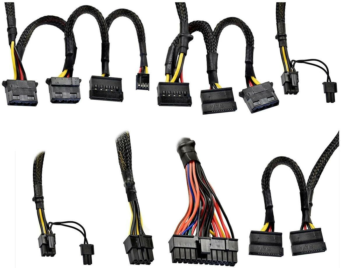 | Разъемы | MB 20+4 pin, CPU 2x(4+4) pin, питание видеокарты 6х(6+2) pin, SATA 8 шт, Molex 4 шт |