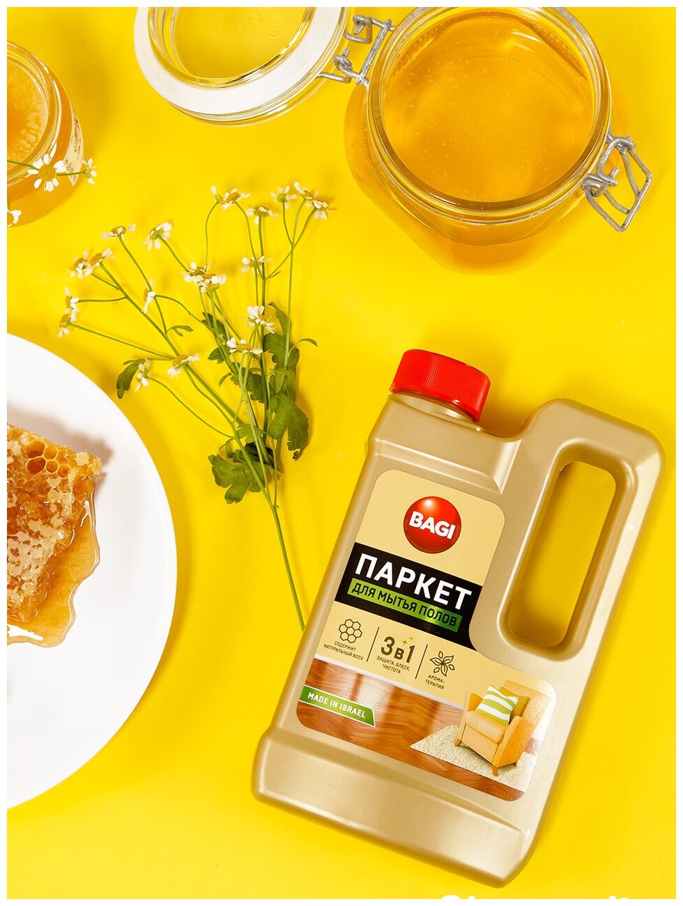 Чистящее средство для паркета не оставляет разводов и подтеков, возвращает поверхности первозданный внешний вид, продлевает срок службы покрытия. После обработки нет необходимости дополнительно полировать пол. Паркет от Bagi безопасен для кожи рук, имеет нейтральный PH и обладает приятным запахом.