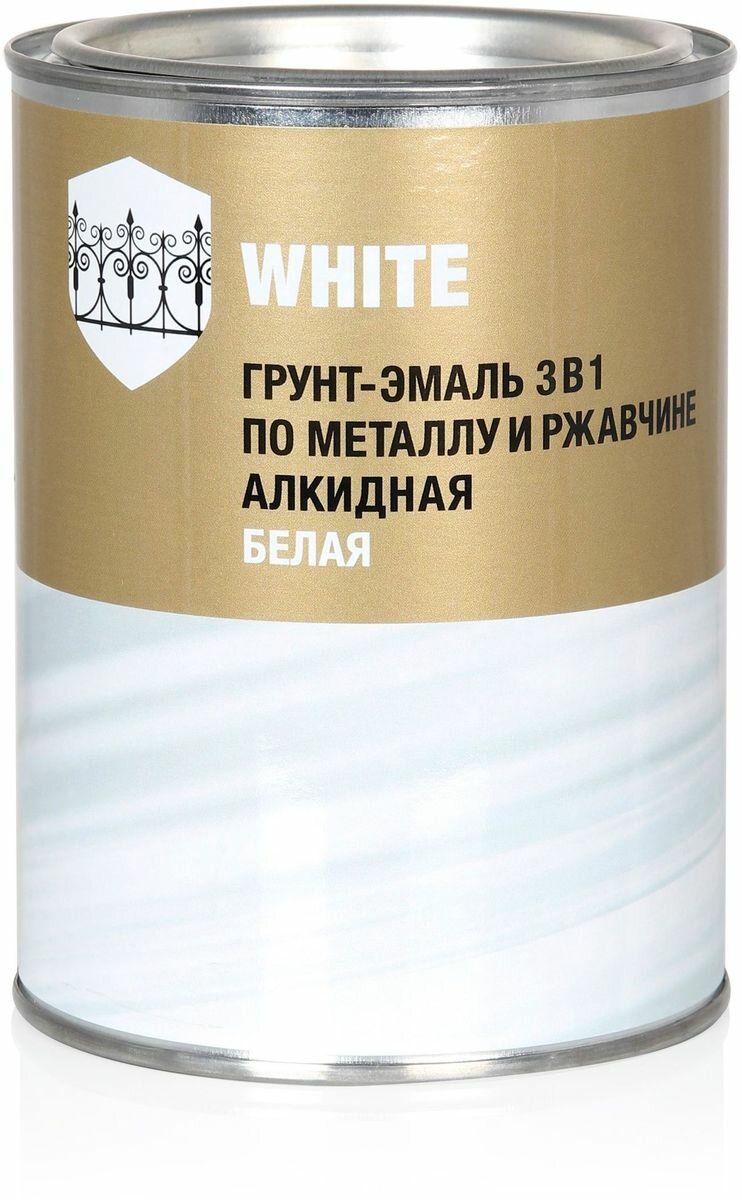 Грунт-эмаль глянцевая по ржавчине 3 в 1 белая 08 кг Без бренда