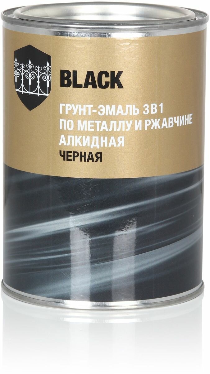 Грунт-эмаль глянцевая по ржавчине 3 в 1 черная 08 кг Без бренда