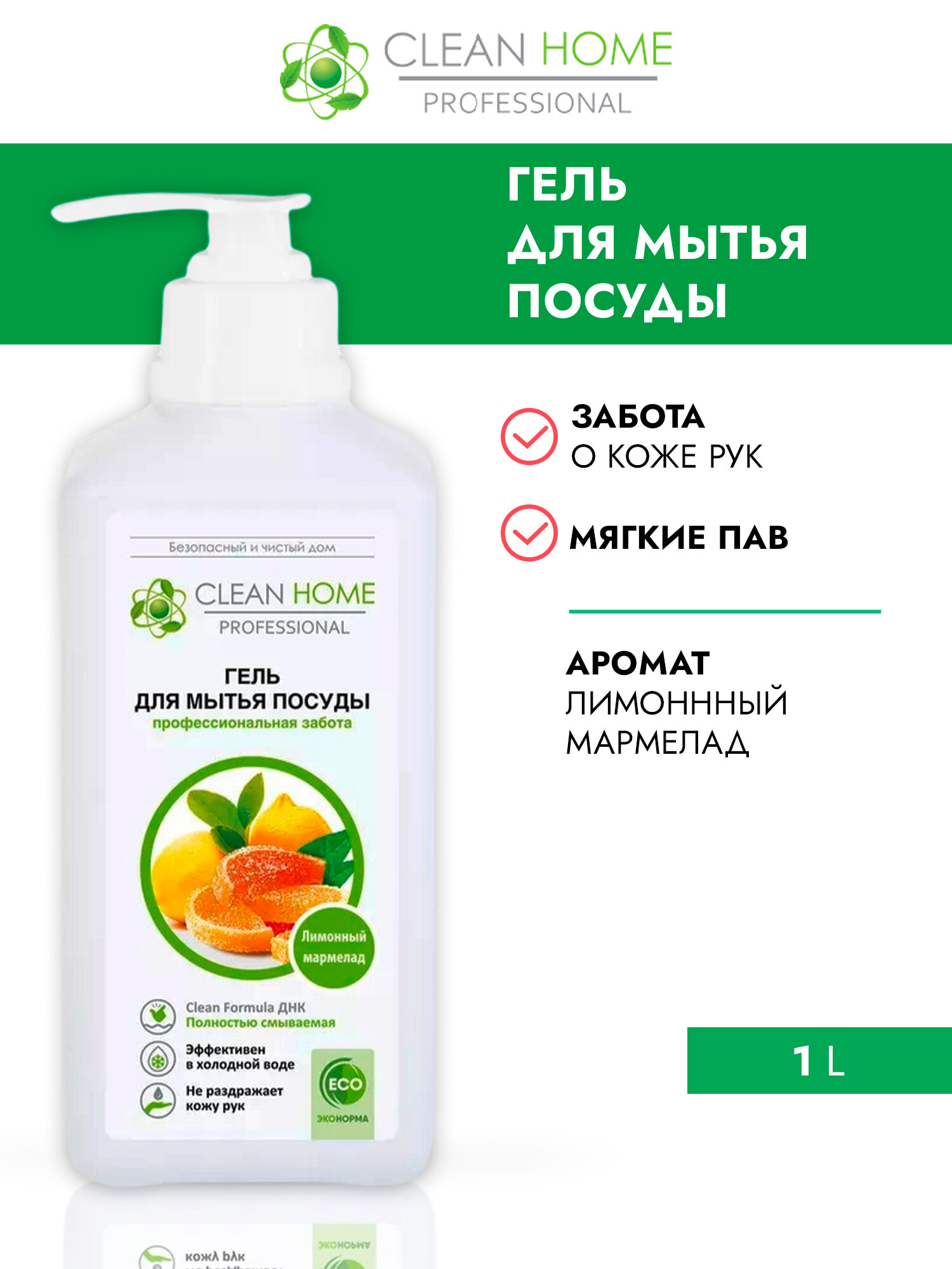Гель для мытья посуды Clean Home Лимонный мармелад с дозатором 1л 600