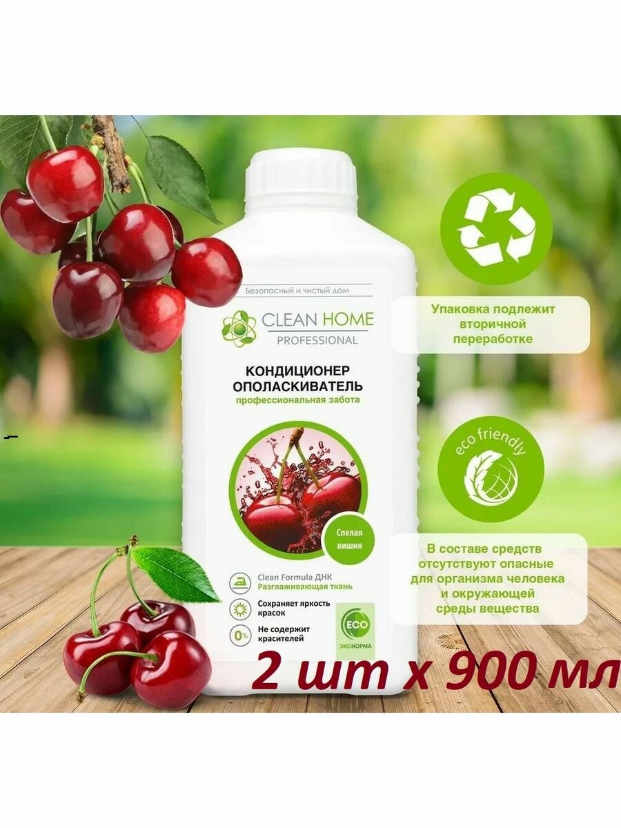 Кондиционер для белья Clean Home, 900 мл, Спелая вишня – свежесть и мягкость для каждого дня. Аромат спелой вишни наполняет вещи приятным запахом, придавая им ухоженный вид. Средство облегчает глажку, сохраняет структуру тканей, придаёт белью шелковистость и защищает от износа. Идеальный выбор для заботы о любимых вещах и создания уюта в доме. Экономия времени и комфорт при каждой стирке.