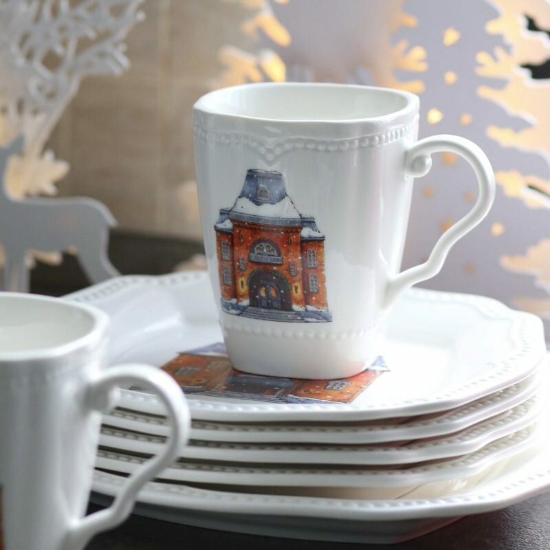 Новогодняя кружка "Snow Town" в подарочной упаковке выполнена из фарфора.Объем кружки для чая 350мл. Высота кружки с новогодней тематикой 10,5см, верхний диаметр 9см.Эту новогоднюю фарфоровую посуду можно использовать в микроволновой печи (СВЧ), можно мыть в посудомоечной машине. Фарфоровую кружку новогоднюю можно использовать для хранения в холодильнике и морозильнике.Стильная и эффектная посуда новогодней коллекции "Snow Town" сочетает в себе оригинальную форму с фактурными узорами и новогоднюю тематику. Новогодняя кружка в подарочной упаковке - отличная идея подарка на Новый год.Новогодняя кружка украшена фактурным геометрическом пояском-горошинами и рисунком в виде городских домов, на крыше которых лежит снег. Чайная кружка соединяет в себе неповторимый дизайн и высокое качество материала. Большая новогодняя кружка имеет глянцевое покрытие. Глазурь защищает поверхность от механических повреждений, придавая красивый блеск. С такой новогодней посудой сервировка Вашего праздничного стола никогда не будет обычной!Кружка для чая будет отличным подарком не только на Новый год и Рождество, новогодние праздники, но и на любой праздник для женщин ценящих домашний уют. Стильная новогодняя посуда подойдет не только для домашней кухни, но и для кафе и ресторана. Набор новогодней посуды для кухни – это отличная идея для подарка! Сделайте подарок для коллеги, подберите посуду для чаепития в подарок маме, родителям, мужчине, подруге, сестре и бабушке. Красивая посуда для сервировки новогоднего стола – это отличный подарок на Новый год и Рождество, новогодние праздники, день рождения, юбилей, новоселье.Новогодняя коллекция посуды "Snow town" представлена различной посудой с новогодней тематикой. Вы можете собрать красивый новогодний чайный сервиз или обеденный сервиз из набора новогодних тарелок, чайных пар, посуды для чаепития, салатников и кружек. Можно сделать небольшой презент в виде новогодней кружки в подарочной упаковке. Новогодний текстиль из коллекции "Snow town" также представлен новогодней скатертью, прихватками и кухонными полотенцами с новогодней тематикой и другим кухонным текстилем. Подобрать подарки на Новый год так просто!
