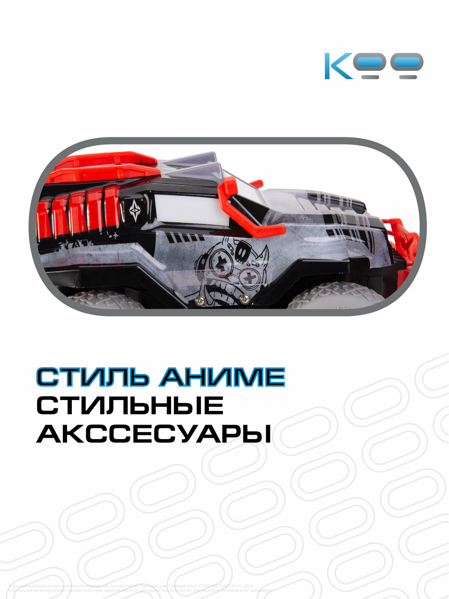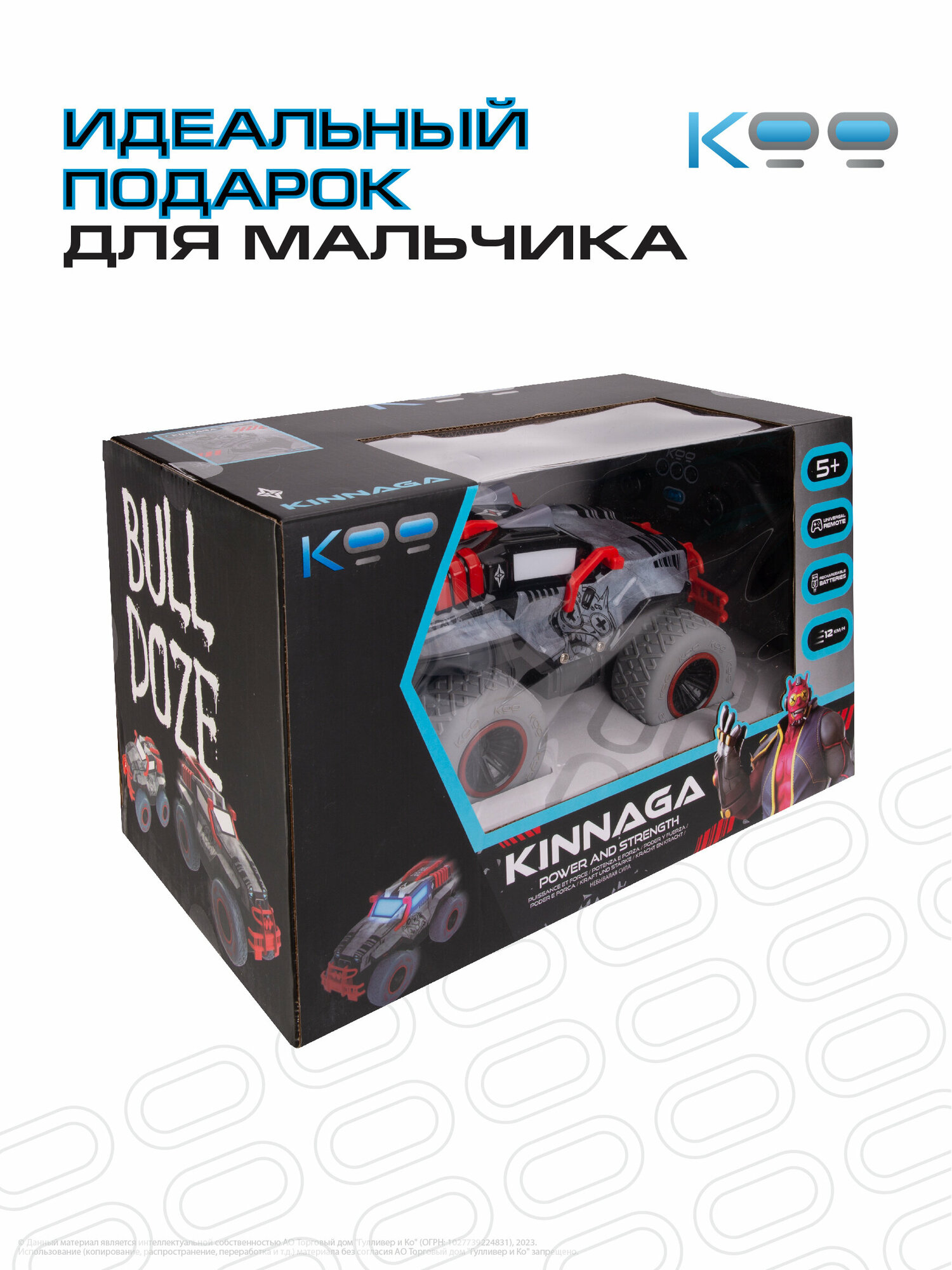 Размер машинки: 24 х 14,5 х 20 см. Размер упаковки: 34,5 х 19,5 х 22 см. Частота дистанционного управления - 2,4 GHz. Мощная аккумуляторная батарея 3,7V 500mAh Li-ion. Игровое время - 15 минут. Скорость машинки – 12 км/ч. Беспроводной пульт поставляется в наборе, для него необходимы 3 батарейки 1,5V AAA (не входят в комплект). Включение и выключение подсветки корпуса, включение режима езды в хаотичном направлении, движение вперёд/назад, движение влево/вправо. В комплекте с машинкой: универсальный пульт дистанционного управления, USB-кабель, аккумулятор, отвёртка, инструкция.Машинка на радиоуправлении Киннига от бренда КОО – это игрушка для детей и взрослых. Она позволит вам почувствовать настоящую скорость и драйв гоночных заездов!Гоночная машинка Киннига имеет уникальный японский стиль и яркий современный дизайн с множеством автомобильных аксессуаров!Машина на пульте управления для мальчиков Киннига работает от аккумулятора, который заряжается от USB-кабеля, 12 км/ч – максимальная скорость, которую она достигает.У этой игрушечной машины длительное игровое время – целых 15 минут! Это позволяет продлить веселье гоночных соревнований и вдоволь насладиться заездом!Кроме того, у машинки на радиоуправлении Киннига множество стильных аксессуаров, которые делают ее дизайн особенно ярким и привлекательным. А яркая подсветка корпуса создаёт эффект реального гоночного автомобиля. Мощные шины, предназначенные для любого покрытия при езде по песку, асфальту или полу, обеспечивают отличную проходимость и контроль на дороге.Радиоуправляемая машинка вездеход Киннига – это лучший подарок для мальчиков и девочек от 5 лет, а также для взрослых на День Рождения, именины, 23 февраля, 8 марта или Новый Год. Будьте готовы к незабываемым моментам и ярким эмоциям на гонке!Позвольте себе окунуться в мир драйва и скорости вместе с другими моделями игрушек на пульте управления КОО: Кита, Кими, Кинчика и др.