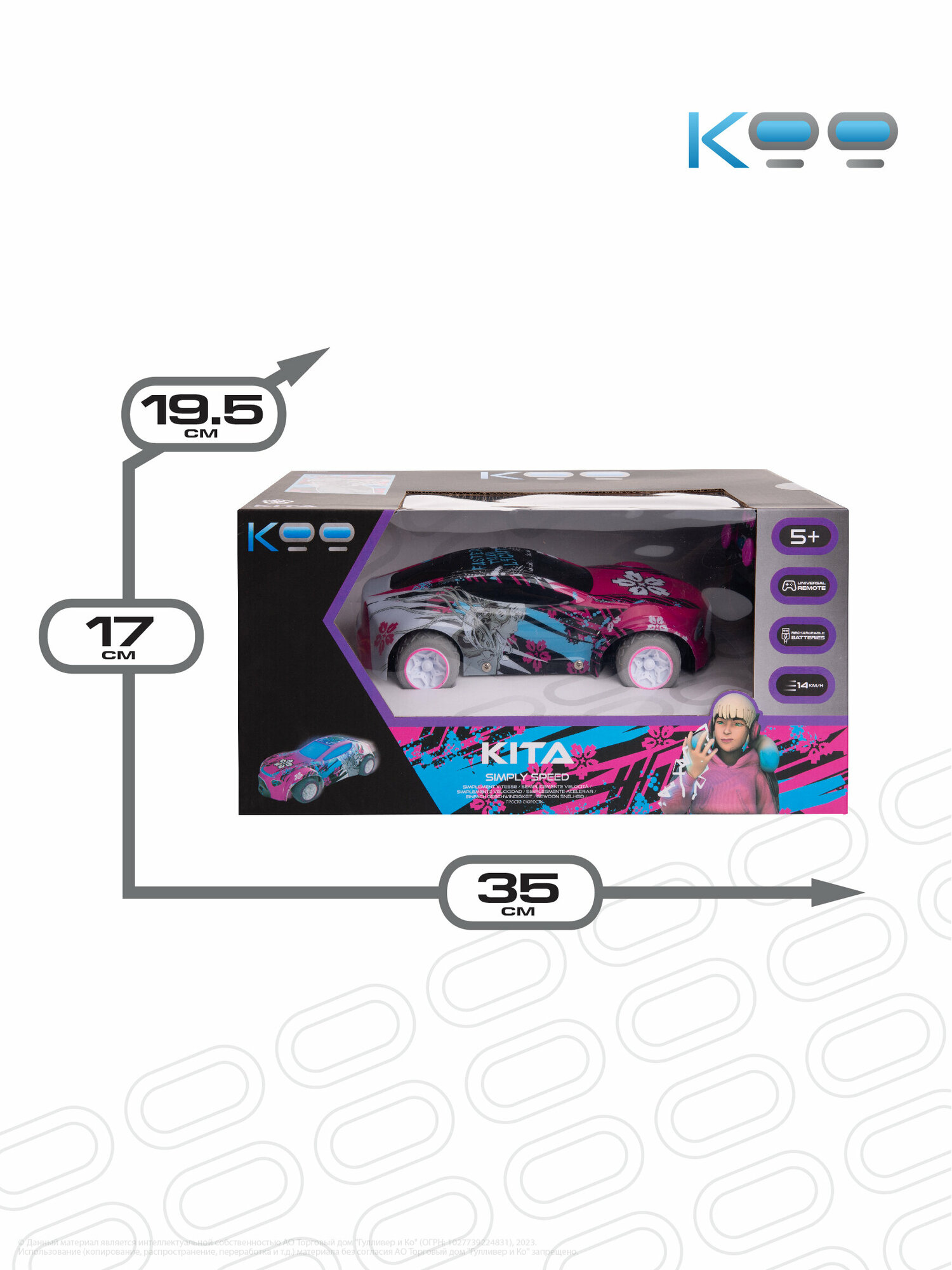 Размер машинки: 22,9 х 11,3 х 6,6 см. Размер упаковки: 35 х 19,5 х 17 см. Частота дистанционного управления - 2,4 GHz. Мощная аккумуляторная батарея 3,7V 500mAh Li-ion. Игровое время - 20 минут. Скорость машинки – 14 км/ч. Беспроводной пульт поставляется в наборе, для него необходимы 3 батарейки 1,5V AAA (не входят в комплект). Включение и выключение подсветки корпуса, включение режима езды в хаотичном направлении, движение вперёд/назад, движение влево/вправо. В комплекте с машинкой: универсальный пульт дистанционного управления, USB-кабель, аккумулятор, отвёртка, инструкция.Радиоуправляемая машинка Кита от бренда КОО создана специально для развлечения девочек и мальчиков от 5 лет, подростков, а также взрослых. Она идеально подойдёт для любителей скорости и позволит вам устраивать интереснейшие гоночные заезды!Утончённый японский стиль и яркий дизайн делают эту игрушечную машинку ещё более уникальной и эксклюзивной!Аккумулятор машинки на пульте управления заряжается от USB-кабеля и обеспечивает время непрерывной игры целых 20 минут!Машина на радиоуправлении для девочек Кита разгоняется до 14 км/ч и позволяет почувствовать себя настоящим гонщиком! Благодаря быстрой и плавной езде, она преодолевает различные препятствия и совершает реалистичные повороты, как на гоночных соревнованиях!Яркая подсветка корпуса игрушки на пульте управления и мощные шины для езды по асфальту, песку, полу и другим поверхностям, позволяют преодолевать различные препятствия на дороге и делают игру ещё более захватывающей! Радиоуправляемая машинка с пультом Кита - это отличный способ порадовать детей, подростков и взрослых на любой праздник, будь то День Рождения, Новый Год, 8 марта, 23 февраля или Именины! Не упустите возможность зарядиться положительными эмоциями от игры вместе с игрушечной машинкой Кита от бренда КОО. Наслаждайтесь динамичной и захватывающей ездой вместе с другими моделями радиоуправляемых игрушек от КОО: Катай, Киннига, Котаро и др.!