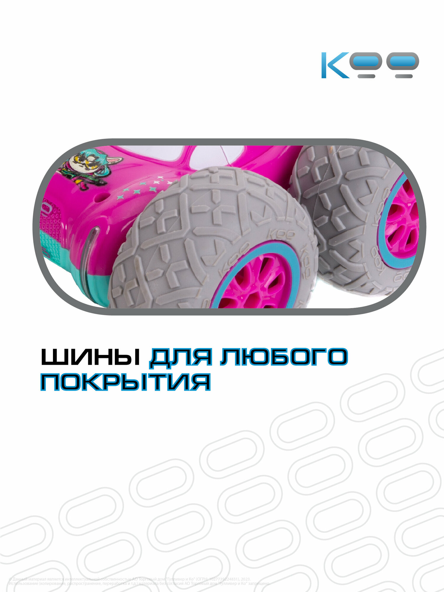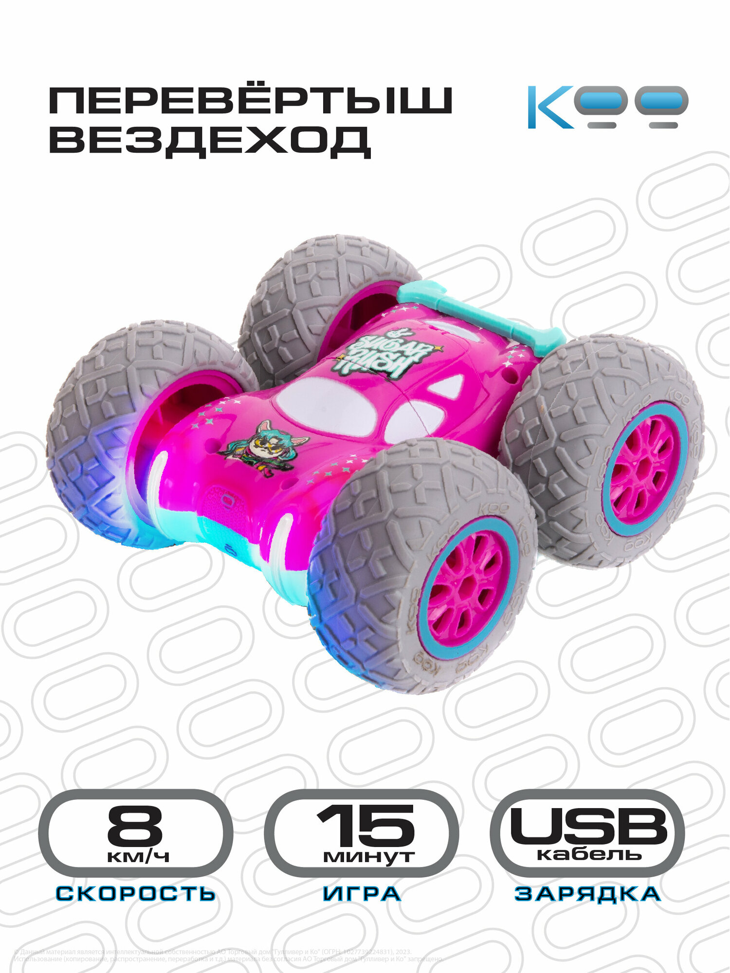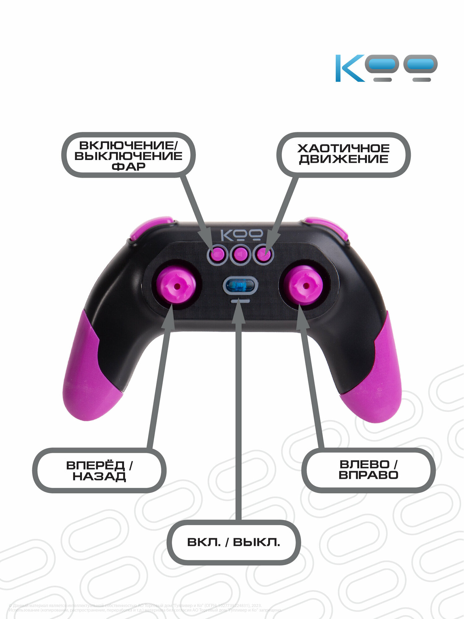 Размер машинки: 14,5 х 14,5 х 6,5 см. Размер упаковки: 27 х 15 х 22 см. Частота дистанционного управления - 2,4 GHz. Мощная аккумуляторная батарея 3,7V 500mAh Li-ion. Игровое время - 15 минут. Скорость машинки – 8 км/ч. Беспроводной пульт поставляется в наборе, для него необходимы 3 батарейки 1,5V AAA (не входят в комплект). Включение и выключение подсветки фар, включение режима езды в хаотичном направлении, движение вперёд/назад, движение влево/вправо, движение вокруг своей оси, опрокидывание на крышу при столкновении с препятствиями. В комплекте с машинкой: универсальный пульт дистанционного управления, USB-кабель, аккумулятор, отвёртка, инструкция.Машинка перевёртыш на радиоуправлении Кайя - это уникальная игрушка, которая привлечёт внимание не только детей и подростков, но и взрослых. Это настоящая находка для любителей скорости и гонок!Машина на пульте управления Кайя выполнена в уникальном японском стиле и ярком дизайне, а также сочетает в себе два различных цветовых решения. Кроме того, эта машинка для девочки Кайя оснащена яркими светящимися фарами, которые позволяют почувствовать реальную атмосферу гоночного заезда!Специально разработанные шины для любого покрытия гарантируют максимальную проходимость и управляемость на различных поверхностях: асфальт, песок, пол. Благодаря этому, игра с машинкой перевёртышем становится не только увлекательной, но и разнообразной.Эта гоночная машинка разгоняется до 8 км/ч, а при опрокидывании на крышу – продолжает движение вперёд и преодолевает любые препятствия у себя на пути, будь то бордюр или стена.Мощный аккумулятор от USB-кабеля, с помощью которого заряжается детский автомобиль, обеспечивает стабильное и долгое игровое время в течение 15 минут. Это позволит насладиться игрой и получить множество положительных эмоций!Если вы хотите найти идеальный подарок для девочки или мальчика, подростка, или просто добавить яркости и веселья в свою жизнь, то машинка на радиоуправлении Кита - это лучший выбор в качестве подарка на День Рождения, именины, 8 марта, 23 февраля или Новый год. Она обладает всеми характеристиками, которые делают эту машинку на пульте управления по-настоящему интересной и увлекательной игрушкой для всех возрастов!Почувствуйте настоящую атмосферу гонок вместе с другими моделями радиоуправляемых игрушек от КОО: Кими, Кита, Котаро и др.!