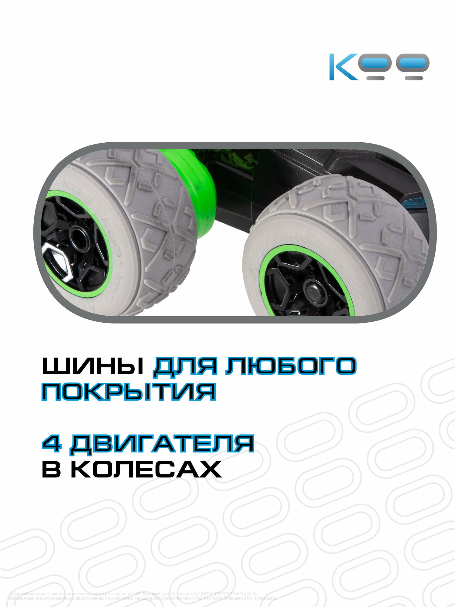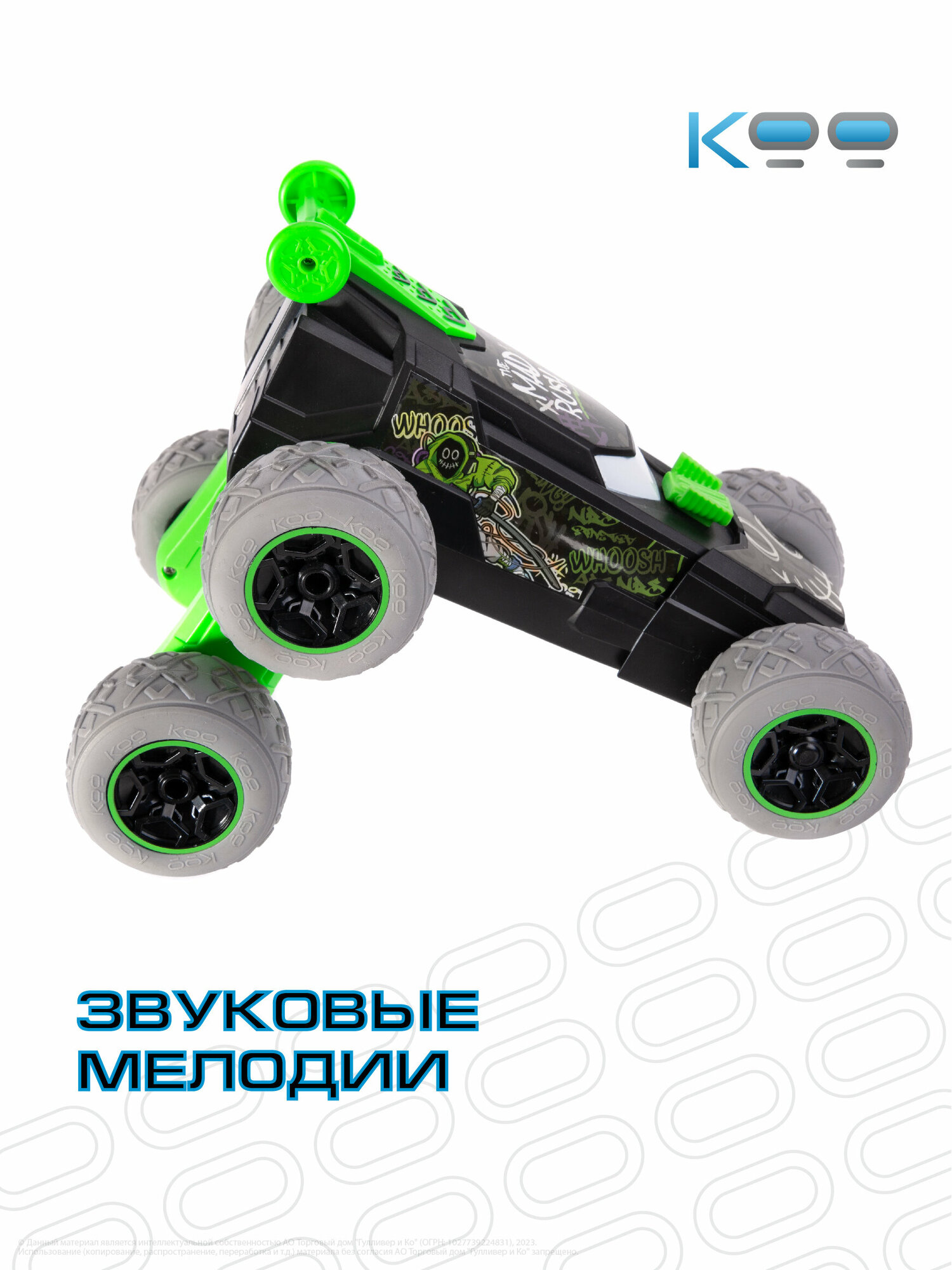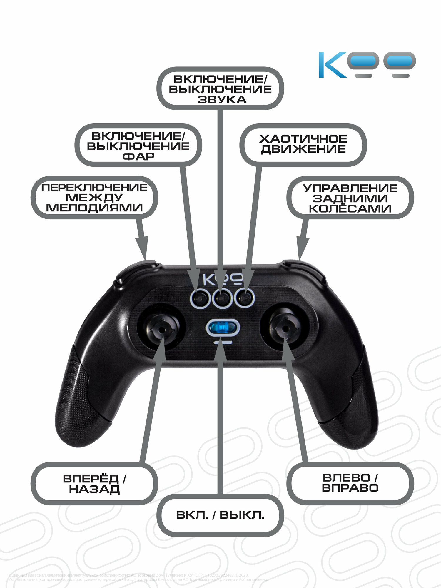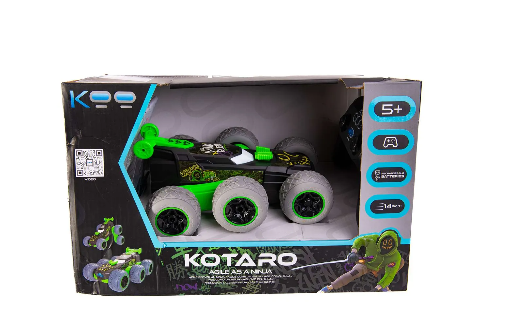 Размер машинки: 19 х 17 х 9,5 см. Размер упаковки: 34 х 19,5 х 22 см. Частота дистанционного управления - 2,4 GHz. Мощная аккумуляторная батарея 3,7V 1200mAh Li-ion. Игровое время - 20 минут. Скорость машинки – 14 км/ч. Беспроводной пульт поставляется в наборе, для него необходимы 3 батарейки 1,5V AAA (не входят в комплект). Включение и выключение подсветки фар, включение и выключение звука, переключение между звуковыми мелодиями, режим управления задними колёсами, включение режима езды в хаотичном направлении, движение вперёд/назад, движение влево/вправо. В комплекте с машинкой: универсальный пульт дистанционного управления, USB-кабель, аккумулятор, отвёртка, инструкция.Машинка вездеход на радиоуправлении Котаро – это увлекательная игрушка, которая позволит вам и вашему ребенку ощутить себя настоящим гонщиком! Машинка для мальчиков на пульте управления Котаро создана в уникальном японском стиле с множеством стильных автомобильных аксессуаров и ярким дизайном!Мощные функционал данной модели радиоуправляемой машины не оставит вас равнодушным! Яркие светящиеся фары и звуковые эффекты позволят погрузиться в атмосферу гонок и почувствовать настоящий драйв и скорость! 4 двигателя для сильной тяги на бездорожье и независимая подвеска задних колёс, управляемая с пульта, позволят преодолевать любые сложные и высокие препятствия на дрогах. Мощные шины, предназначенные для любого покрытия при езде по асфальту, песку или полу, гоночной машинки вездеход позволяют преодолевать любые препятствия и наслаждаться игрой без каких-либо ограничений.Машина на пульте управления Котаро развивает скорость до 14 км/ч, а мощный аккумулятор с USB-кабелем обеспечит стабильную работу игрушки и позволит насладиться игрой на протяжении 20 минут!Радиоуправляемая машинка Котаро - это лучший способ провести время с пользой и удовольствием. Большой выбор функций и возможностей позволит воплотить в жизнь ваши самые смелые гоночные фантазии! Этот игрушечный автомобиль отлично подойдёт в качестве подарка девочкам и мальчикам от 5 лет, подросткам, и даже взрослым на любой праздник: День Рождения, именины, 23 февраля, 8 марта или Новый год.Насладитесь игрой вместе с другими моделями радиоуправляемых игрушек от КОО: Кими, Погтадор, Котаро и др.!