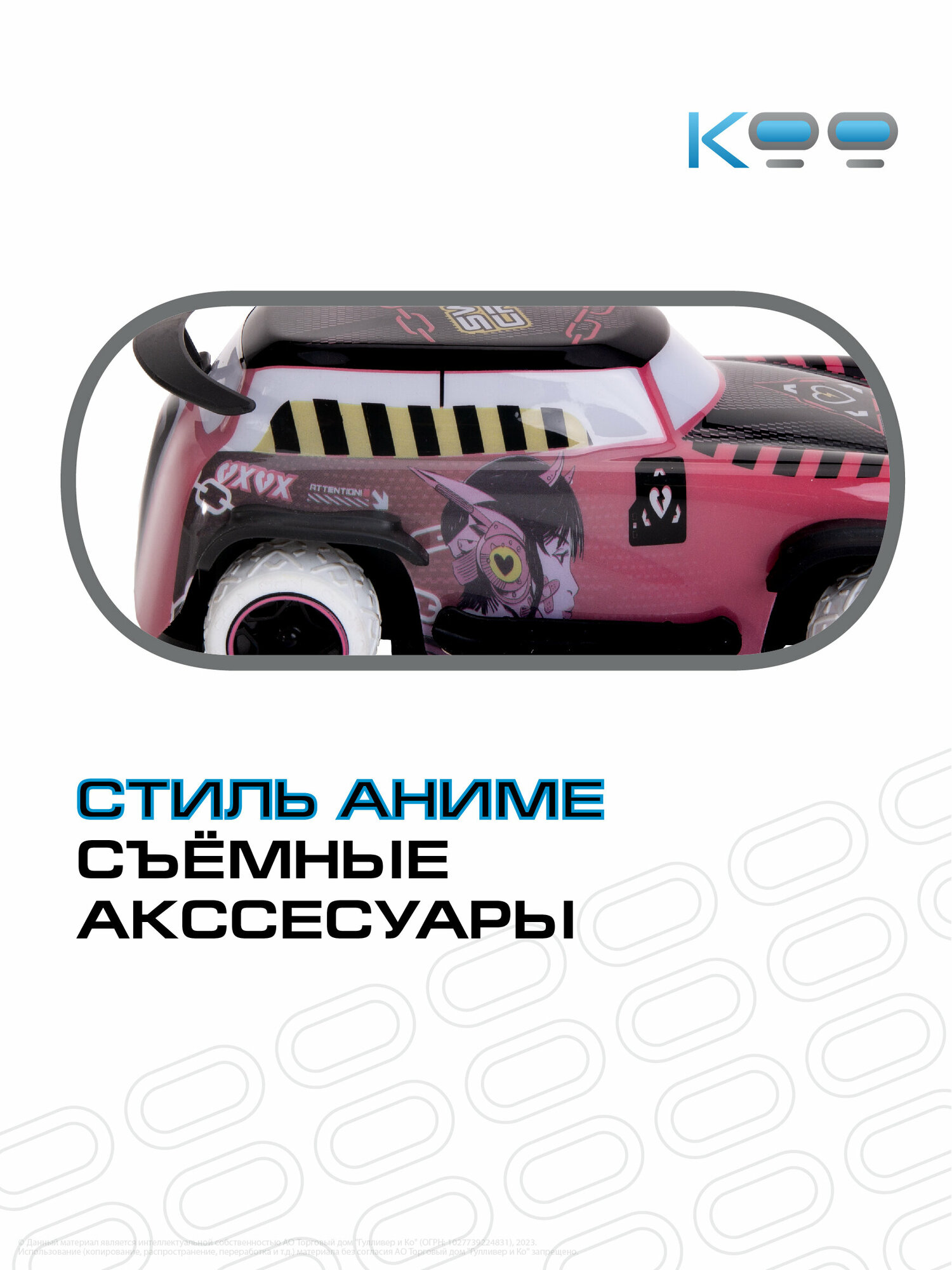 Машинка для девочки Кохана от бренда KOO - это игрушка на пульте управления, которая создана для маленьких гонщиков и взрослых любителей скорости. Эта радиоуправляемая игрушка превратит любую гонку в захватывающее приключение!Эта машинка на радиоуправлении представлена в уникальном японском стиле, с множеством аксессуаров, ярким современным дизайном, и оригинальными героями. Съёмное антикрыло, подсветка корпуса, мощные шины для любого покрытия, позволяющие ездить по песку, асфальту, снегу, полу и другим поверхностям, делают эту игрушечную машинку ещё более неуязвимой на дорогах! Эта игрушка на пульте управления может разгоняться до 14 км/ч, что позволяет почувствовать настоящую атмосферу гонки. Аккумулятор от USB-кабеля даст возможность насладиться игрой целых 15 минут! Гоночная радиоуправляемая машина "Кохана" - это прекрасный выбор в качестве подарка для маленьких девочек и мальчиков от 5 лет, подростков, и даже взрослых на любой праздник: День Рождения, Новый Год, именины, 8 марта, 23 февраля. Устраивайте экстремальные заезды на невероятной скорости с другими моделями игрушек на пульте управления КОО: Каору, Кайя, Кими и др. Они уже ждут вас на гоночном треке!
