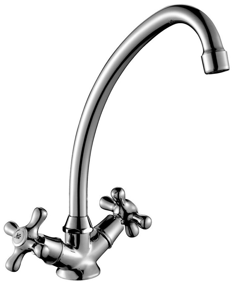 Хромированный двуручный смеситель с поворотным изливом для кухни. Особенности: Керамический картридж Rossinka Silvermix Аэратор Rossinka Silvermix - насыщает струю воздухом, что уменьшает расход воды, снижает уровень шума, улучшает моющие свойства воды, делает струю объемной, равномерной и приятной на ощупь, пластиковая сетка благодаря функции "антикальций" защищена от известковых отложений, что увеличивает срок службы аэратора.