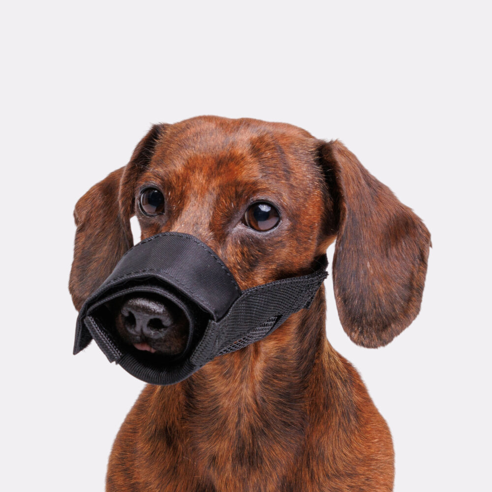 - Нейлоновый намордник с прочной сеткой хорошо держит форму.