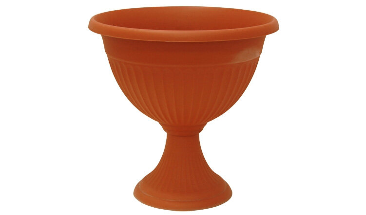 Элегантный вазон на изящной ножке используется как для размещения цветочного горшка, так и для посадки растений. Кашпо подходит для ландшафтного дизайна и украшения интерьера.