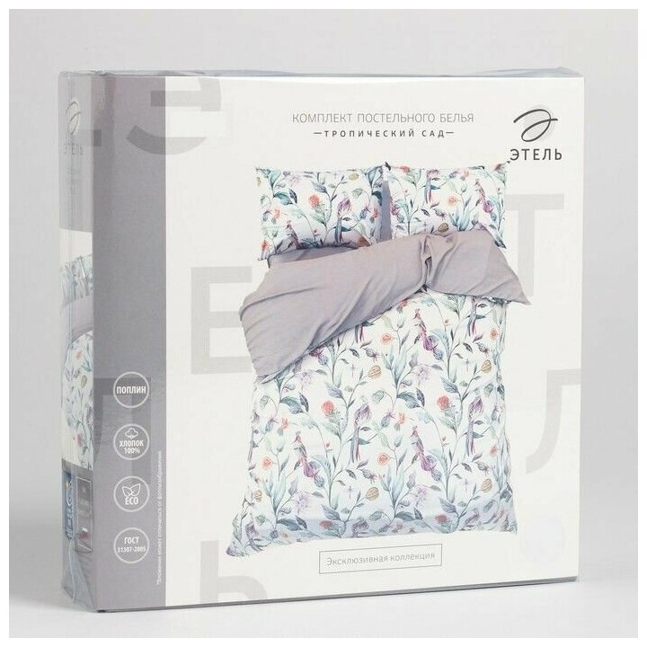 Постельное бельё Этель Дуэт "Тропический сад" 143х215 см-2 шт, 220х240 см, 50х70 см -2 шт, поплин. 9233636.