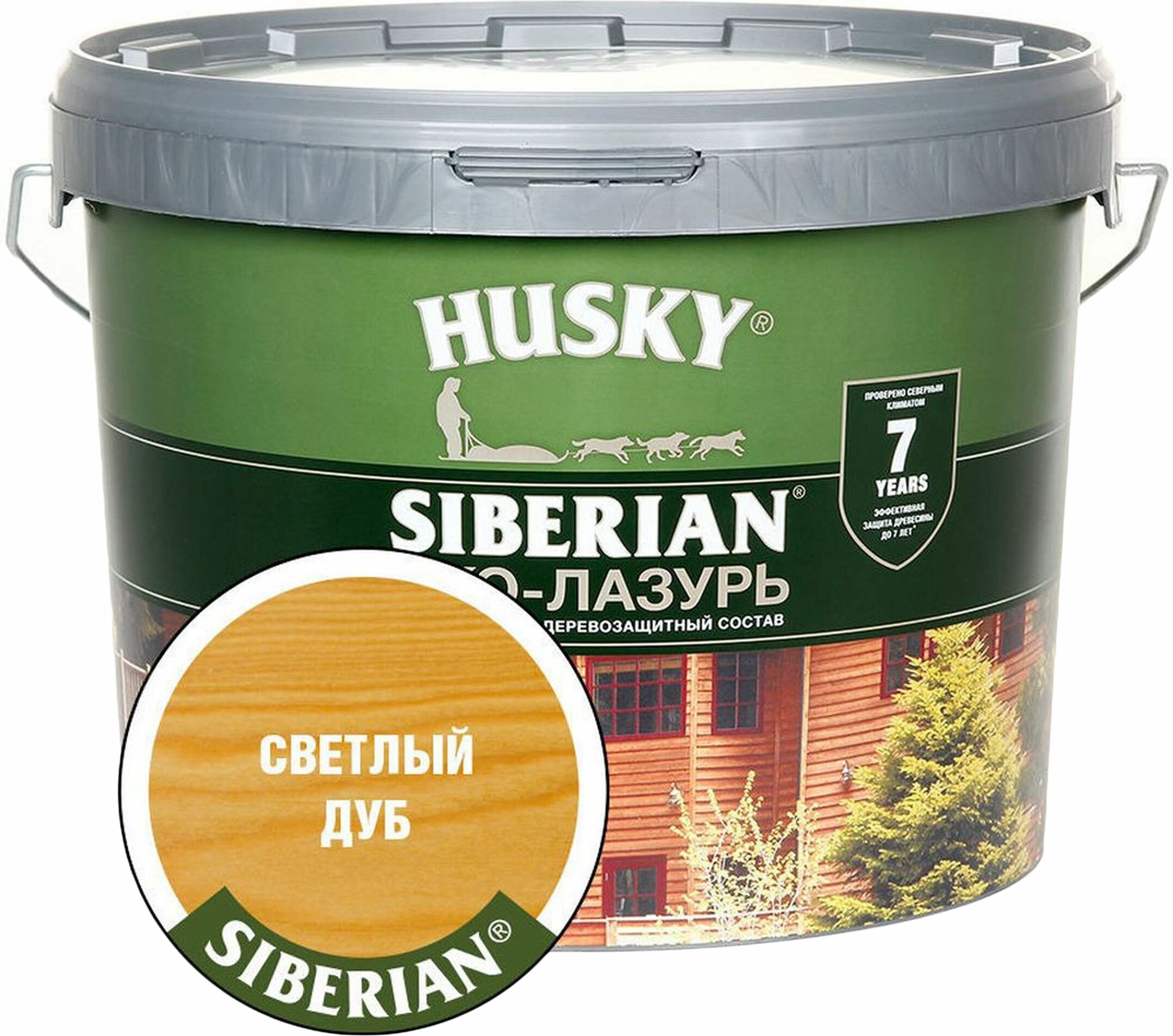 Эко-лазурь Husky Siberian полуматовая светлый дуб 9 л 25225