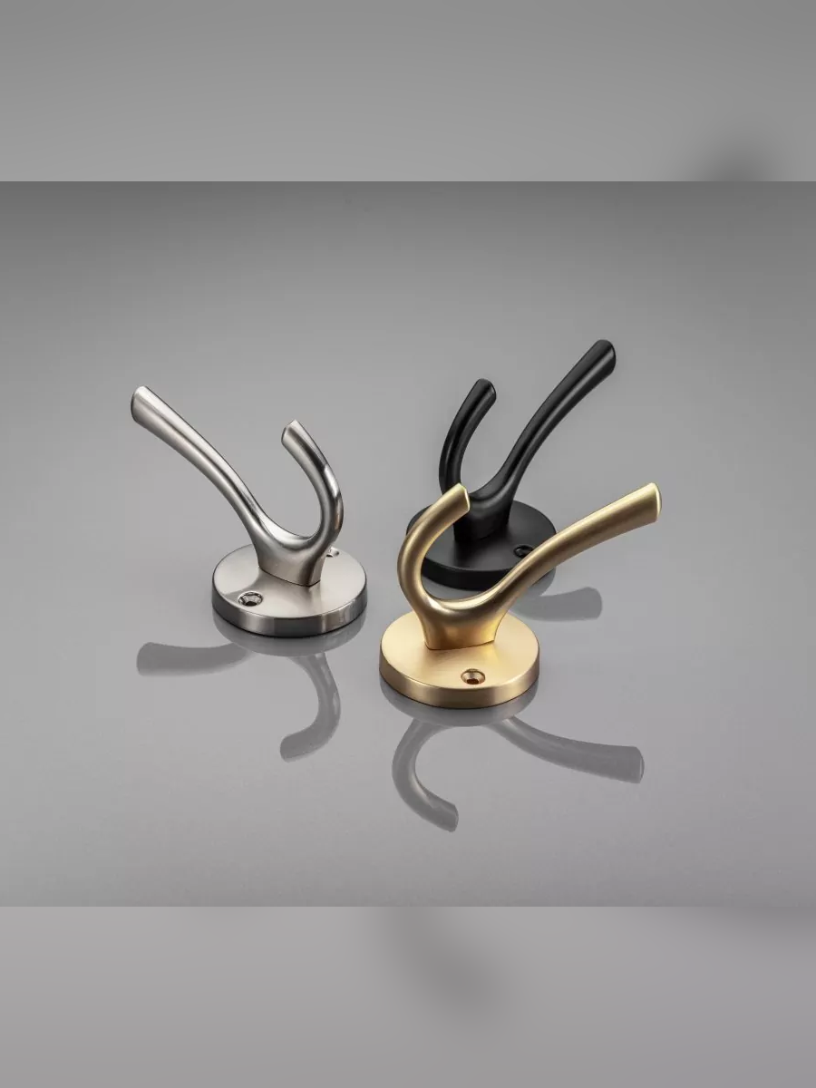 Крючок мебельный RHINO, черный матовый - популярная интерьерная вешалка, используемая для хранения одежды, а также для сумок, пакетов, полотенец, зонтов. Крючок имеет открытое крепление, а также две вешалки-рожка. Крючок подойдет для ванной, спальни, гардеробной, прихожей, кухни и даже лоджии или балкона. Крючки Рино используются как настенные крепления, дополняющие интерьер, а также могут быть установлены внутри шкафа.Крючок отлит из прочного материала под названием ZnAl (ЦАМ) - это смесь цинка, алюминия и меди. Такое сочетание металла в сплаве позволяет сохранить прочностные и антикоррозийные свойства изделия, при этом добавив лёгкости конструкции. Прочное покрытие не только эффектно выделяет крючки RHINO в интерьере, но и защищает их поверхность.