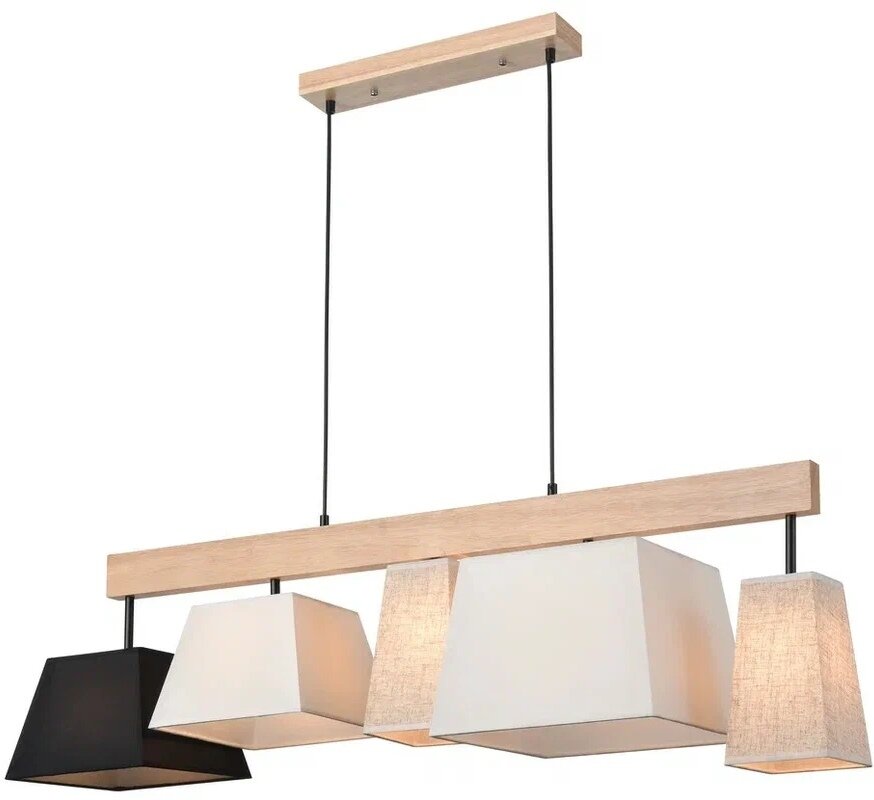 Подвесная люстра Velante 267-713-05 - это современное и стильное решение для освещения вашего дома или кафе. Люстра имеет пять плафонов, выполненных из ткани и арматуры из металла и дерева. Это придает ей уникальный и современный вид. Люстра оснащена пятью лампочками типа E27, что обеспечивает яркое и равномерное освещение. Мощность каждой лампочки составляет 40 Вт, а общая мощность люстры - 200 Вт. Люстра имеет высоту 36 см, длину 118 см и ширину 30 см. Длина подвеса составляет 64 см, что позволяет регулировать высоту люстры. Управление люстрой осуществляется механическим способом, что делает ее удобной в использовании. Люстра имеет степень пылевлагозащиты IP20, что гарантирует ее безопасность и долговечность. Люстра Velante 267-713-05 произведена в Италии, что является гарантией высокого качества и стиля. Выбирая подвесную люстру Velante 267-713-05, вы получаете стильное и функциональное освещение для вашего дома или кафе.