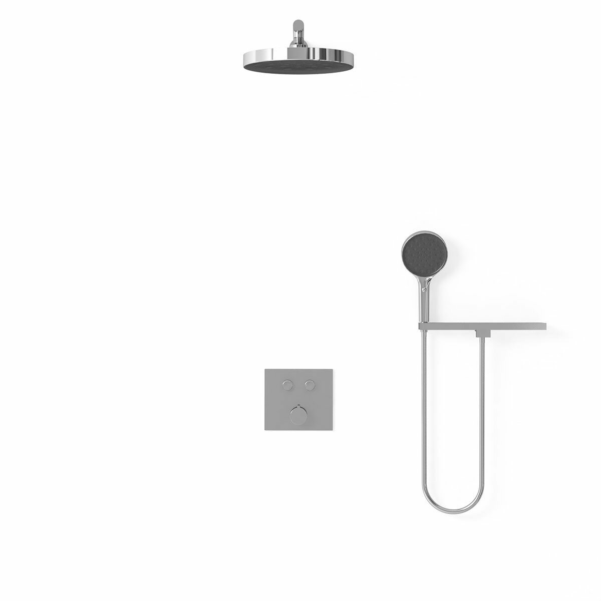 Комплектация: Верхний душ, полка с изливом и держателем ручного душа, ручной душ, смеситель со встраиваемой частью