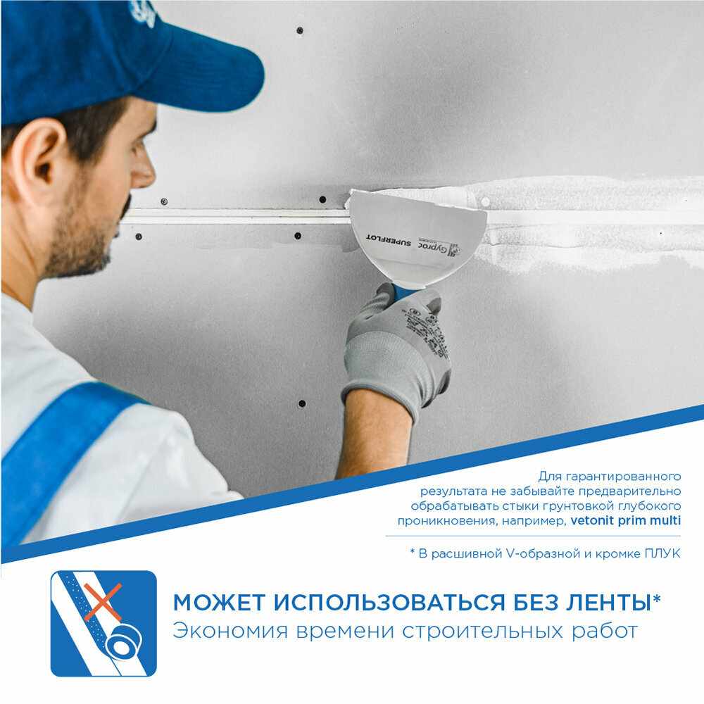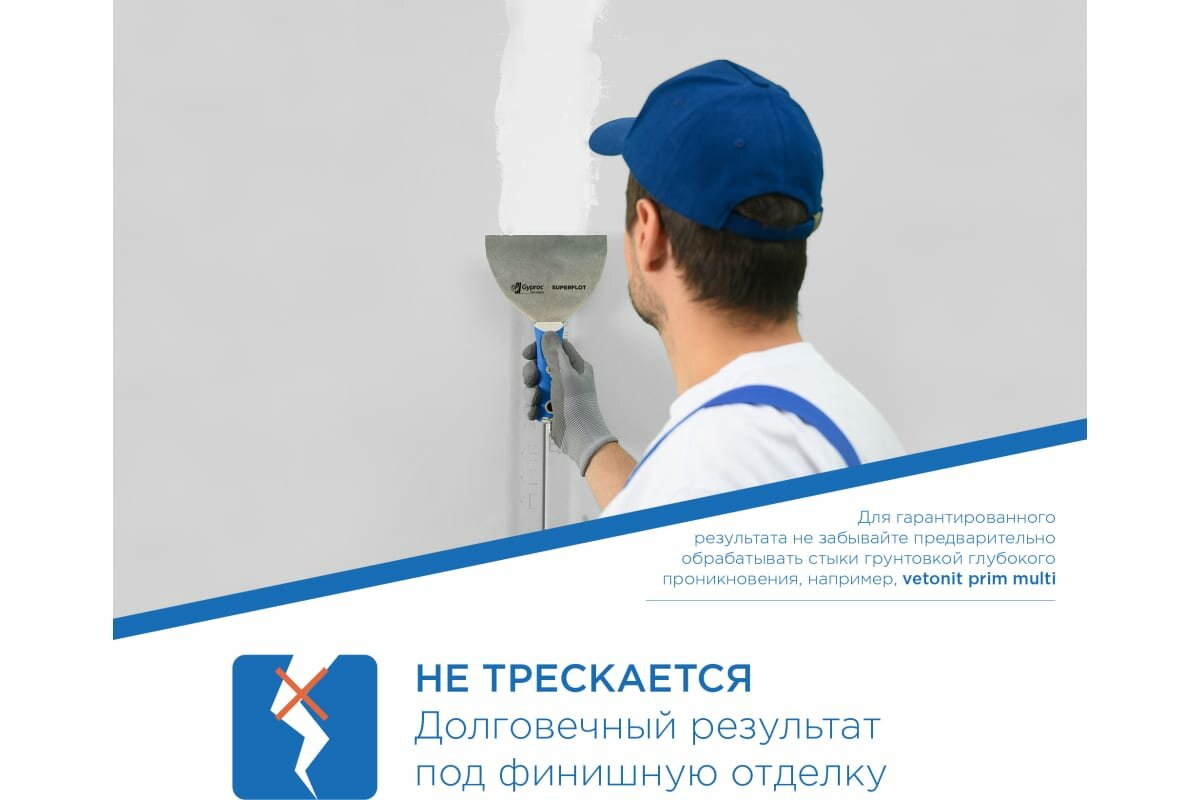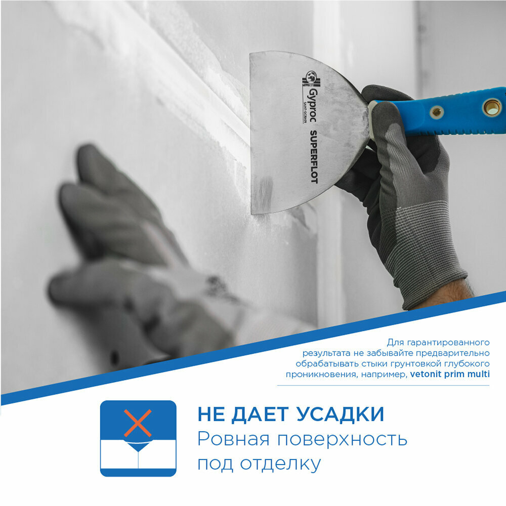 Гипрок Superflot — высокопрочная безусадочная трещиностойкая гипсовая шпаклевка для стыков ГКЛ, ГСП и ГВЛ на основе высококачественного гипса с полимерными добавками.Применяется для внутренних работ в любых типах зданий и сооружений с сухим и нормальным влажностным режимом в конструкциях перегородок, облицовок и потолков.