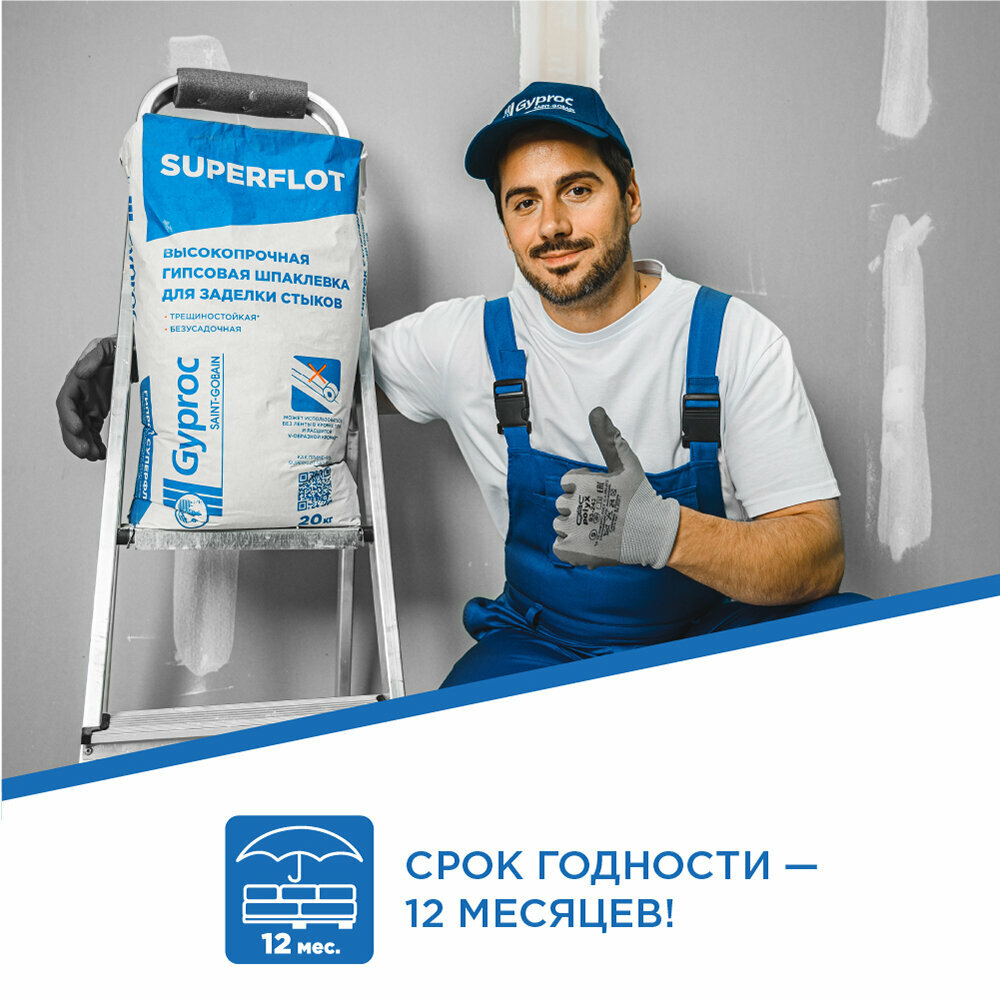 На сегодняшний день товар «Шпаклевка гипсовая для швов Гипрок Superflot 20 кг Gyproc суперфлот» можно купить с кешбеком в 1 магазине: Яндекс.Маркет