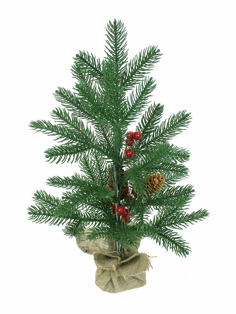 "**Ель искусственная «Декоративная»** — это небольшая, но пышная елочка, которая будет радовать глаз на столешнице или подоконнике. Станет отличным декором для праздничного стола. Оптимальный вариант для помещений, где теснота или домашние животные не позволяют расположить полноразмерное дерево. Густые, тщательно прокрашенные ветки изготовлены из ПВХ. Хвою украшают шишки и ягоды. Подставка в виде мешочка придает ели дополнительную изысканность. Ель быстро и легко устанавливается.