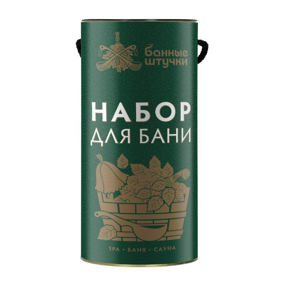 **Подарочный набор в тубе Банные Штучки** предназначен для проведения банных процедур. В набор входят 4 предмета: шапка, мыло, запарка, мочалка-варежка. Банная шапочка выполнена из войлока, который поддерживает постоянную температуру под головным убором, вне зависимости от температурных колебаний снаружи и создает отличный тепловой барьер. Материал надежно защищает голову, уши и волосы от жара парной. Пихтовое мыло прекрасно очищает, тонизирует, омолаживает и разглаживает кожу. Активный компонент моющего средства оказывает противовоспалительное и антисептическое действие. Запарка для бани с эвкалиптом повышает эффективность банных процедур. Аромат эвкалиптовых листьев создает комфортную атмосферу и оказывает успокаивающее воздействие на организм и благоприятно влияет на органы дыхания. Удобная мочалка-варежка легко вспенивает моющие средства, мягко массирует и тщательно очищает кожу от загрязнений.