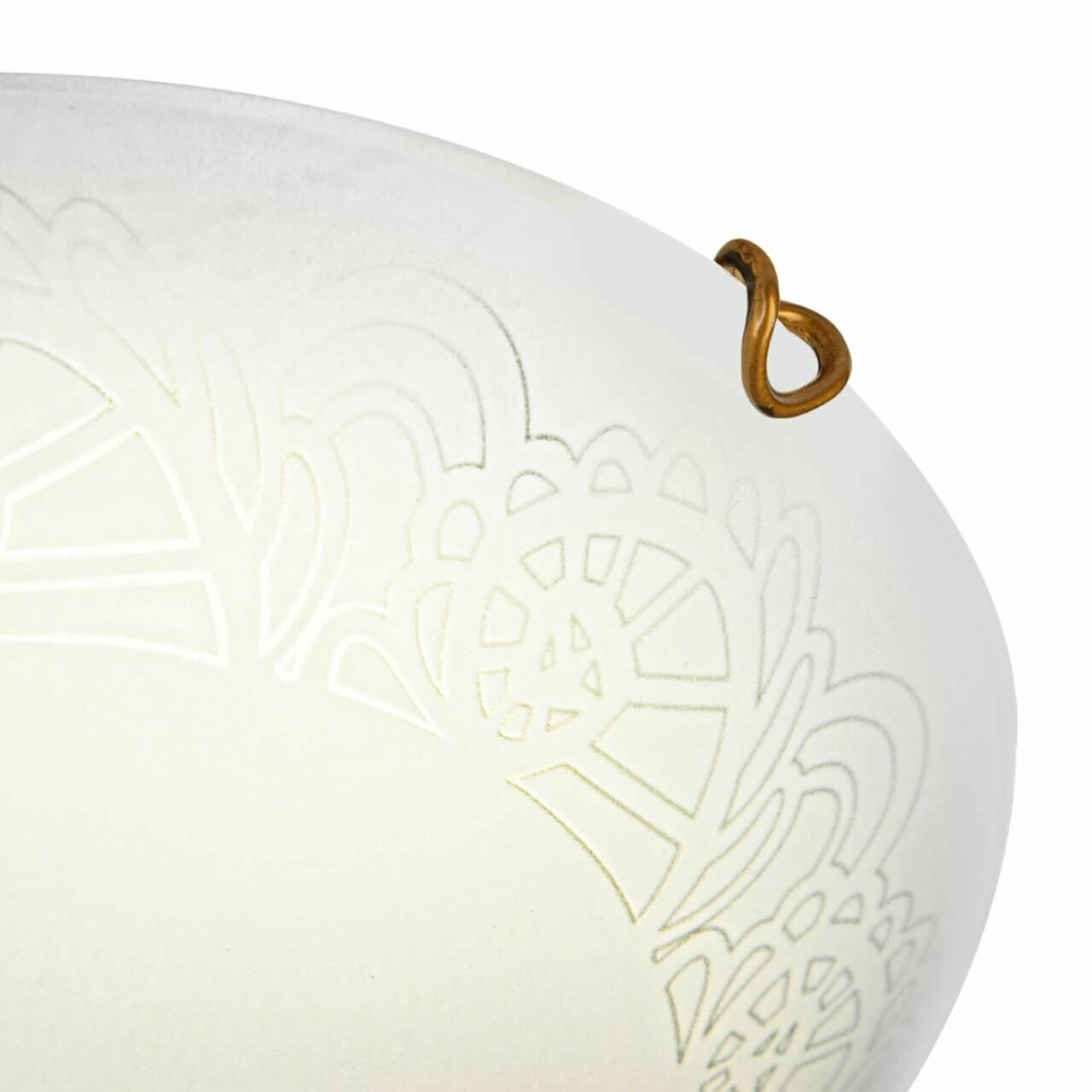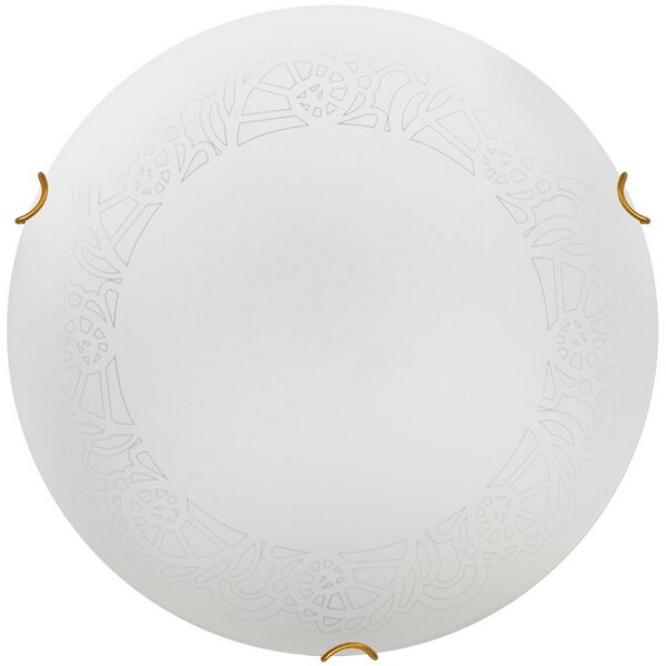 Светильник 7602/DL линии AMMONITE состоит из металлического основания (базы) и декорированного плафона. Материал плафона - стекло белого цвета с матовой поверхностью, обеспечивающее светильнику равномерное рассеивание и хорошее светопропускание. Форма плафона: круглая, декорирована прозрачным рисунком и клипсами цвета золото. В комплект входит заменяемый LED модуль с линзами, мощностью 48Вт, которая соответствует лампе накаливания 350Вт. Источник света имеет комфортную цветовую температуру 4000К (естественный белый, дневной свет).