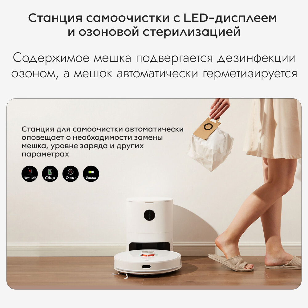 | Особенности | с фильтром тонкой очистки; построение карты помещения; управление со смартфона; станция самоочистки; автоматический поиск ЗУ; таймер на каждый день недели |