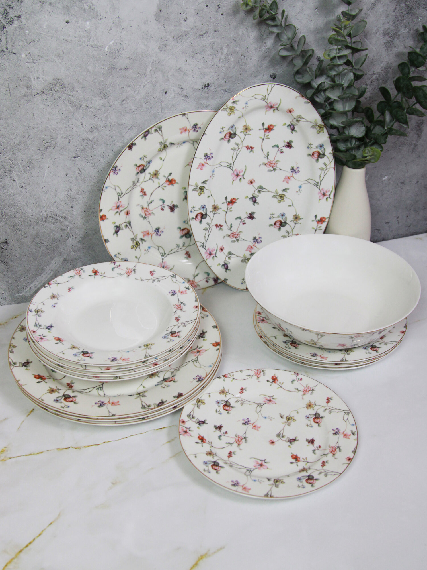 | Состав набора | блюдо - 1 шт, салатник - 1 шт, тарелка десертная - 4 шт, тарелка обеденная - 4 шт, тарелка суповая - 4 шт |