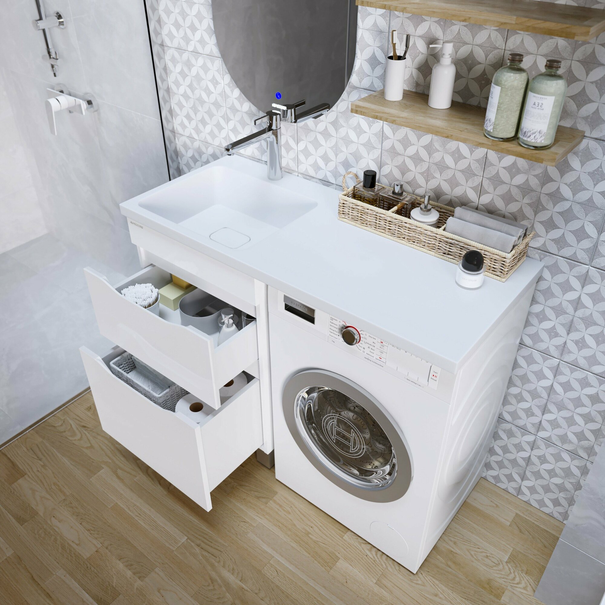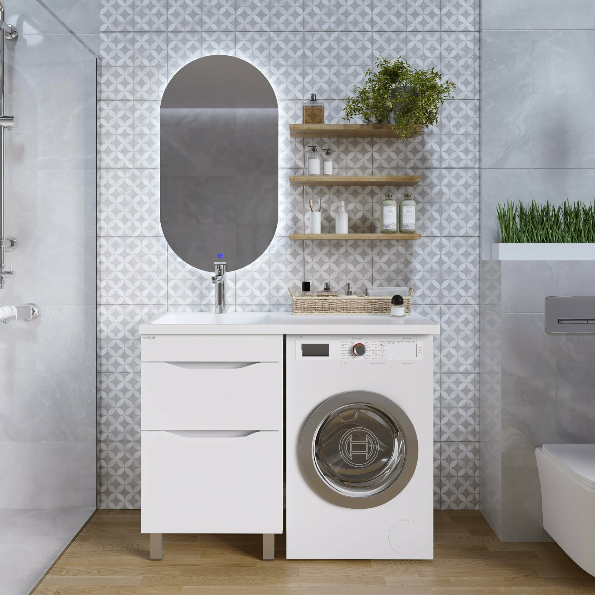 | Монтаж | Полувстраиваемые, с местом под стиральную машину, подвесная |
