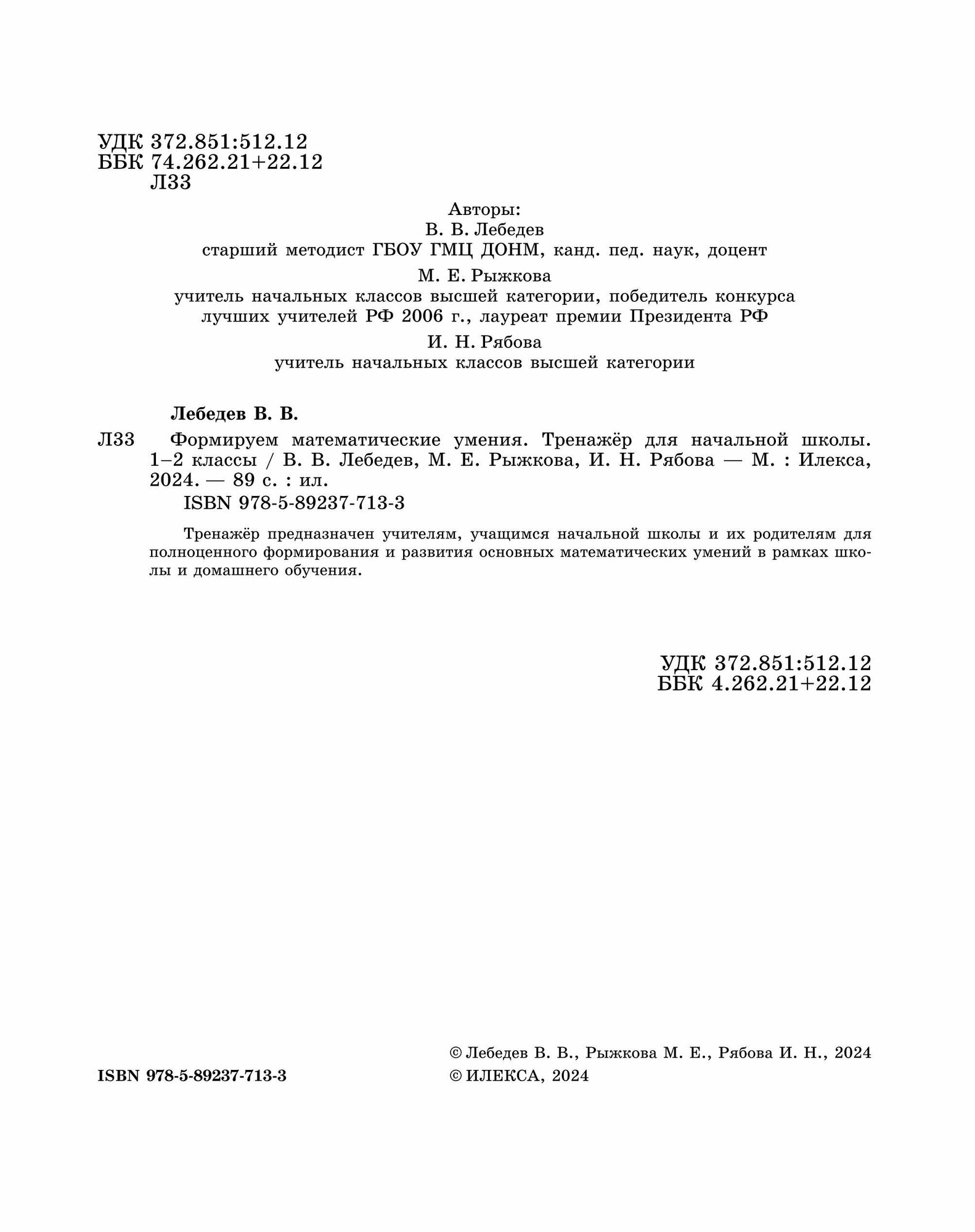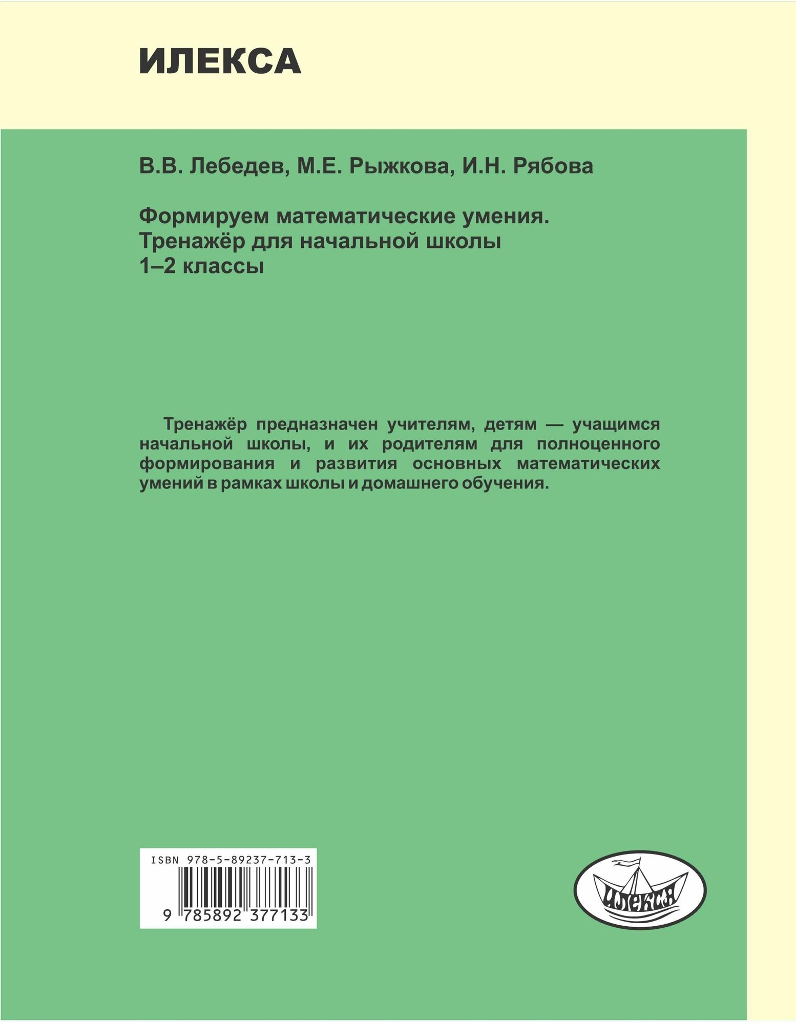Формируем математические умения. 1-2 класс. Тренажер для начальной школы (Лебедев Валерий Владимирович, Рябова И. Н., Рыжкова М. Е.); Илекса, 2024