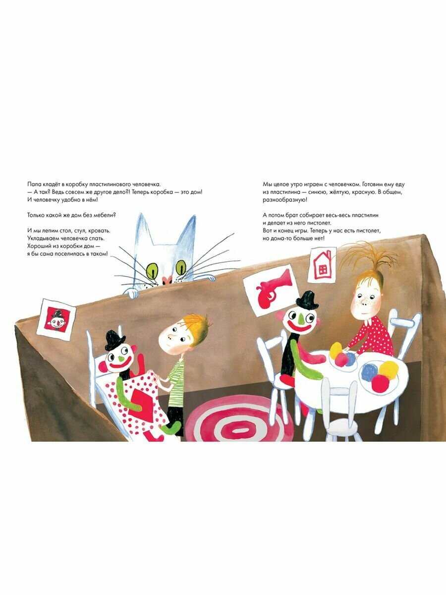 Однажды папа принёс домой коробку. На первый взгляд, совершенно обыкновенную. Но оказалось, с ней можно играть! В простой коричневой коробке шумит море, сверкает звёздами небо, живут крошечные человечки и прячутся тайны.