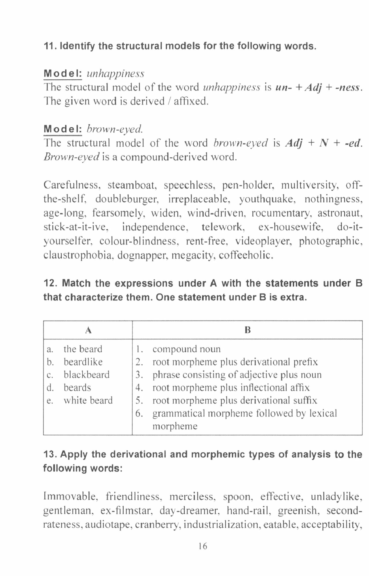 В пособии представлены задания, цель которых помочь студентам в практическом овладении основами английской лексикологии, в частности, основами словообразования и фразеообразования. В каждом разделе приводятся тестовые вопросы для контроля усвоения знаний. Приложение содержит перечни словообразовательных элементов с указанием их происхождения, значения и примеров использования.