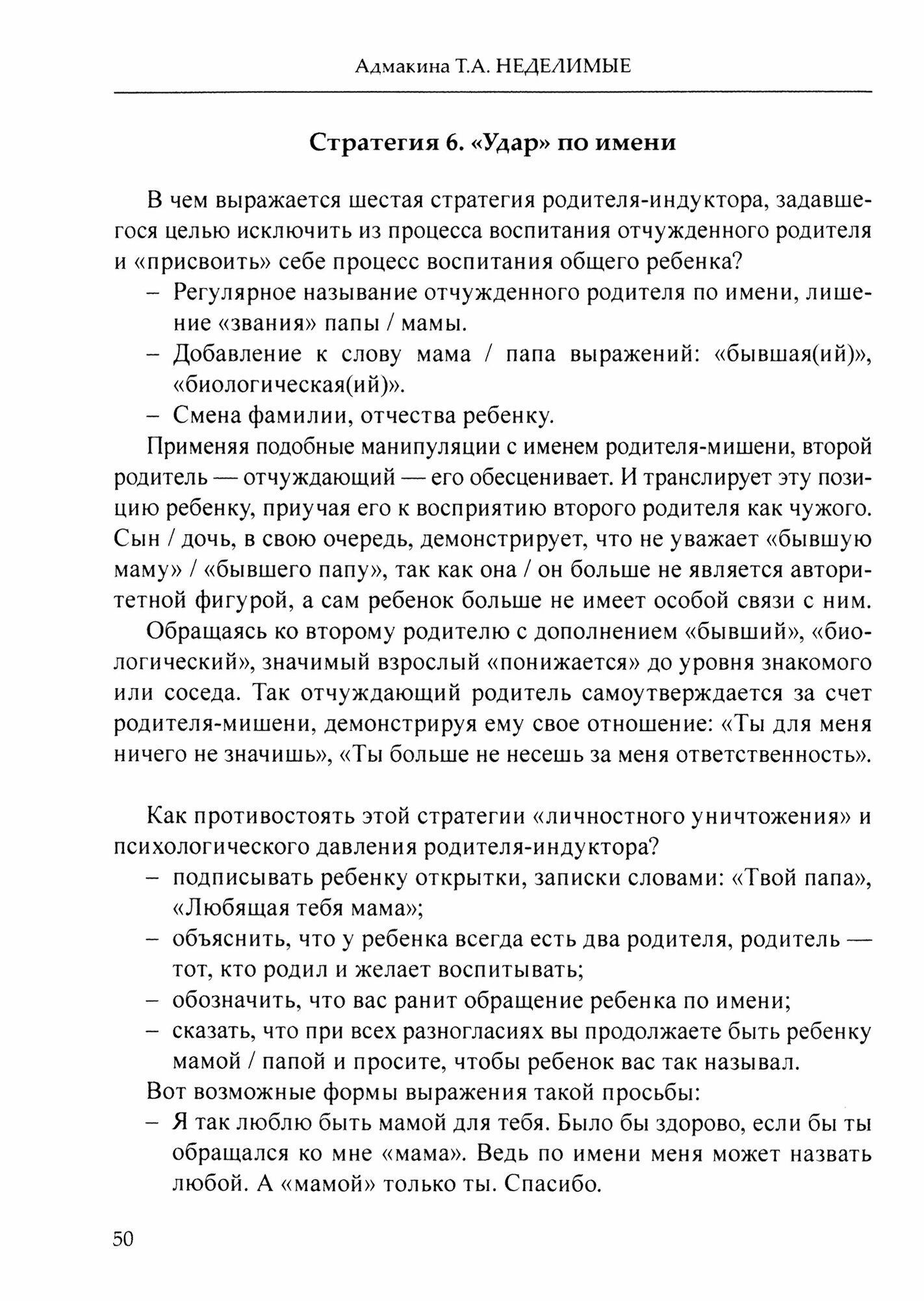 Книга адресована тем, кто разводится и, испытывая эмоциональную перегрузку, хочет построить здоровые отношения с самим собой и своим ребенком, а также профессионалам, занимающимся проблемами развода. "Неделимые" включает истории из жизни, действенные практики по работе с разрушительными эмоциями и личный опыт автора.