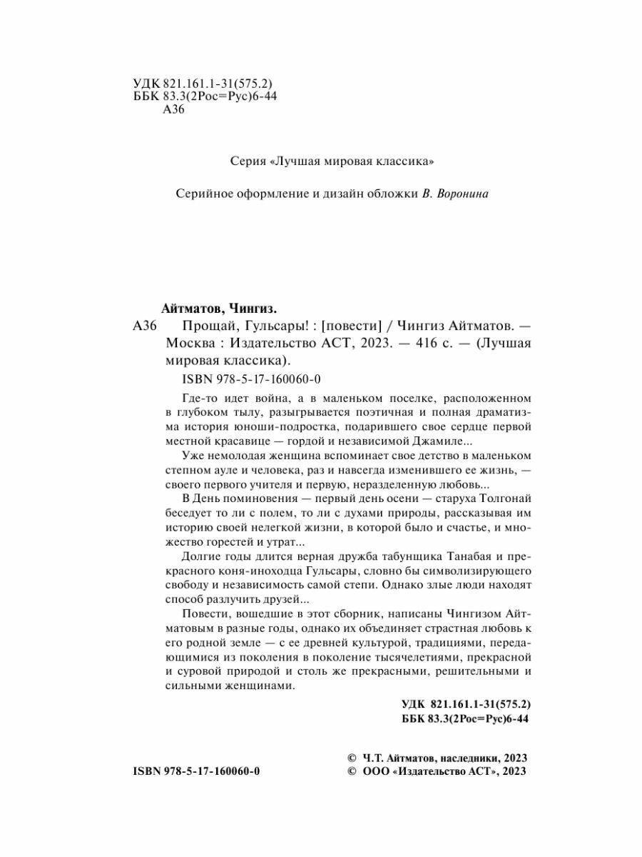 На сегодняшний день товар «Книга: Прощай Гульсары! (Чингиз Айтматов); АСТ, Neoclassic, 1958, 1962, 1963, 1966» можно купить с кешбеком в 5 магазинах: book24, ЛитРес, Буквоед, Читай-город, Яндекс.Маркет