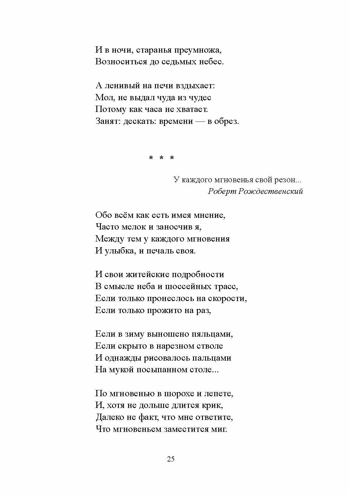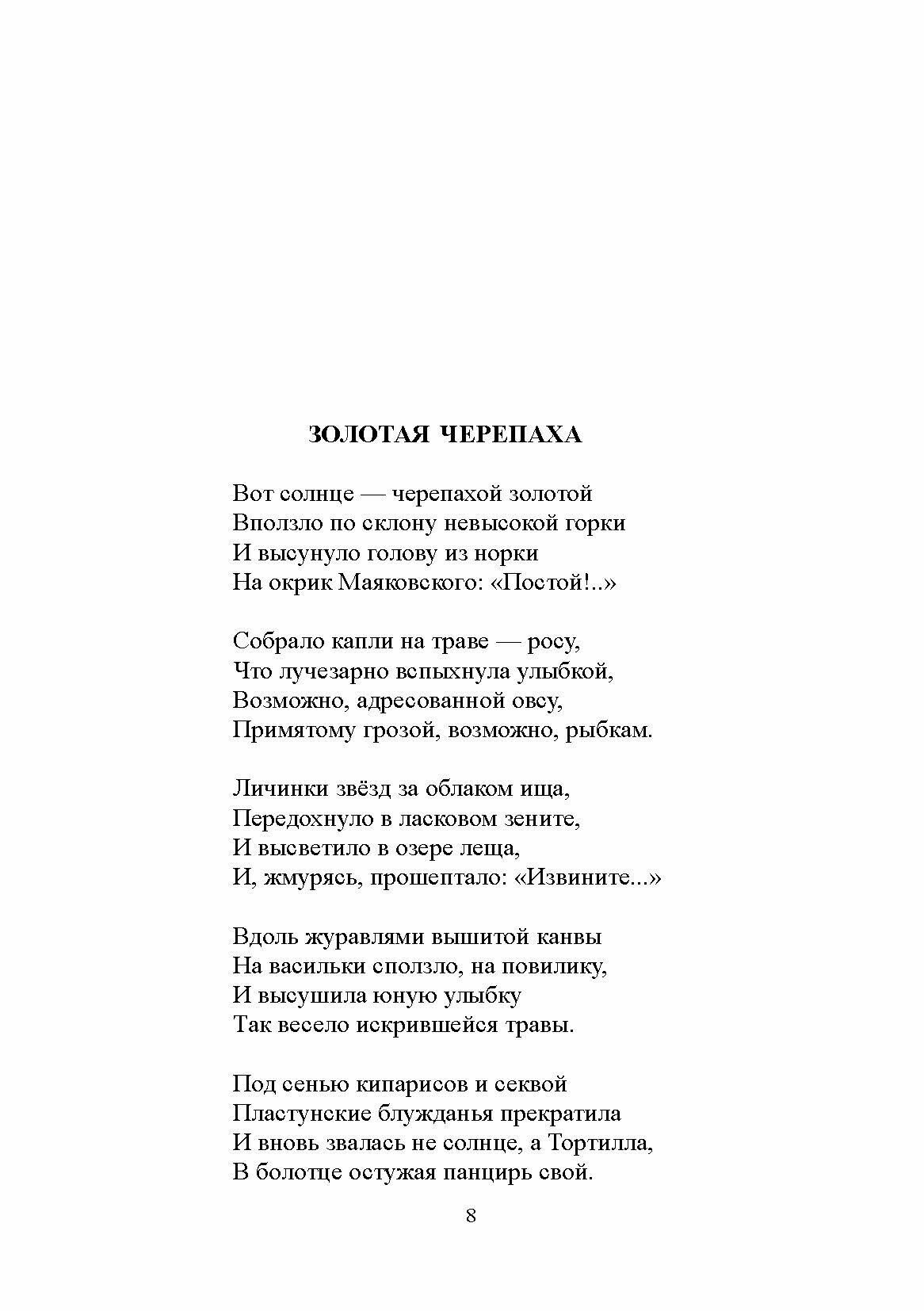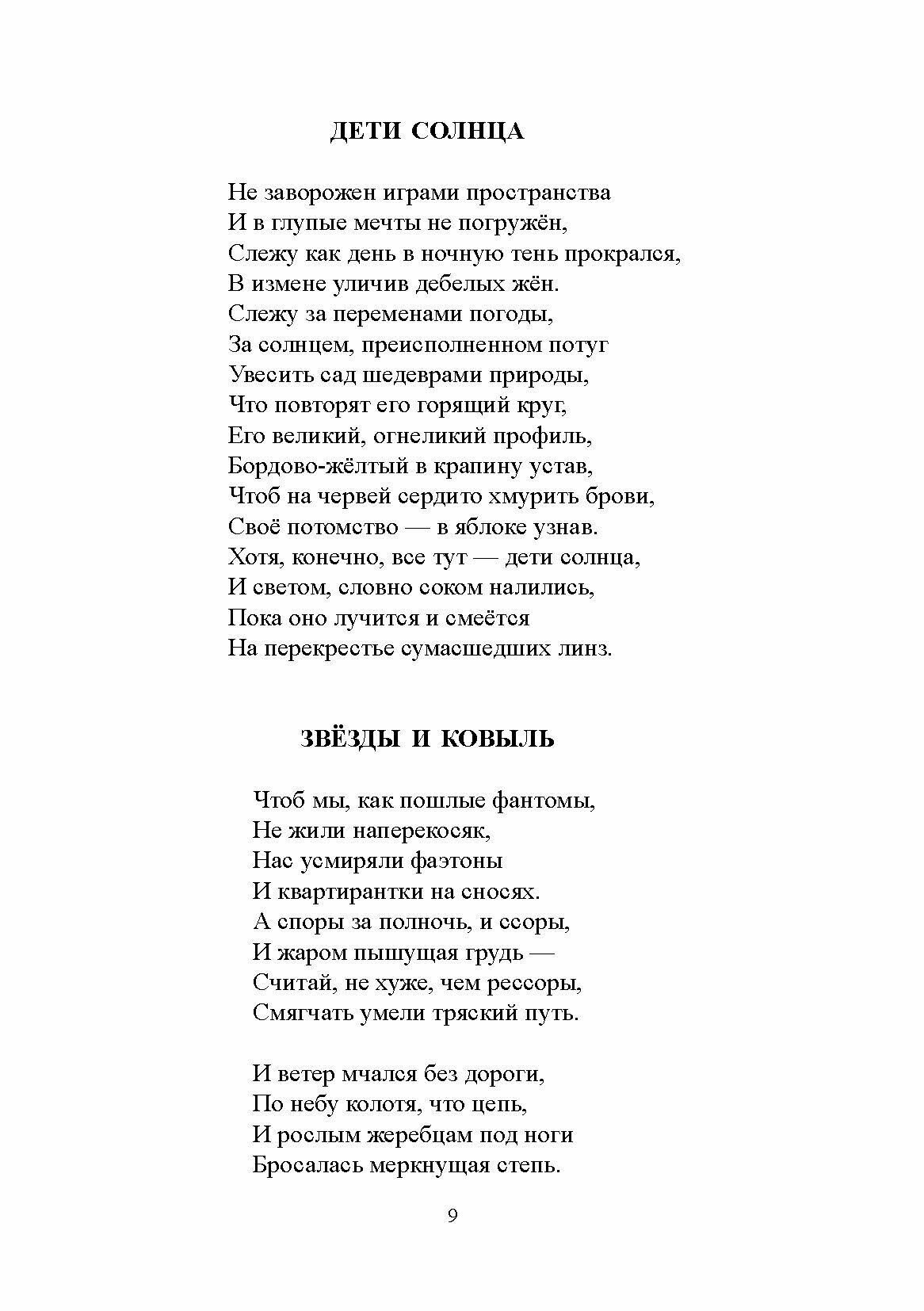 Стихи о важнейшем, начиная от Космоса и кончая кухонной поварёшкой. Всё, во что мы погружены, чем увлечены, в чём замешаны. Вся наша человеческая, личностная правда и сущность. И не то, чтобы натурально, но в поэтическом осознании и преломлении.