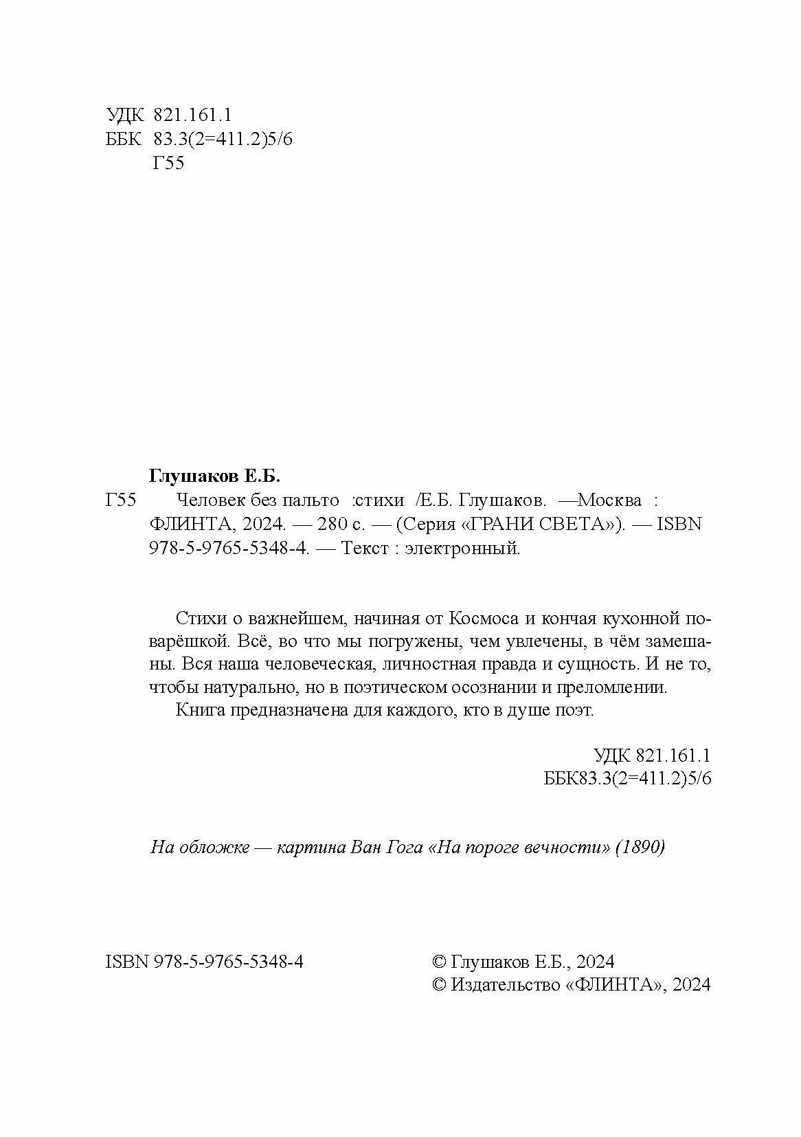 Сервис сравнения цен СкидкаГИД предлагает сравнить цены на товар «Книга: Человек без пальто (Евгений Борисович Глушаков); Флинта, 2024»