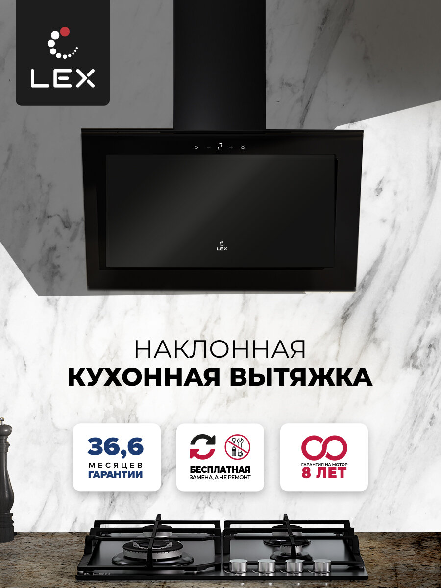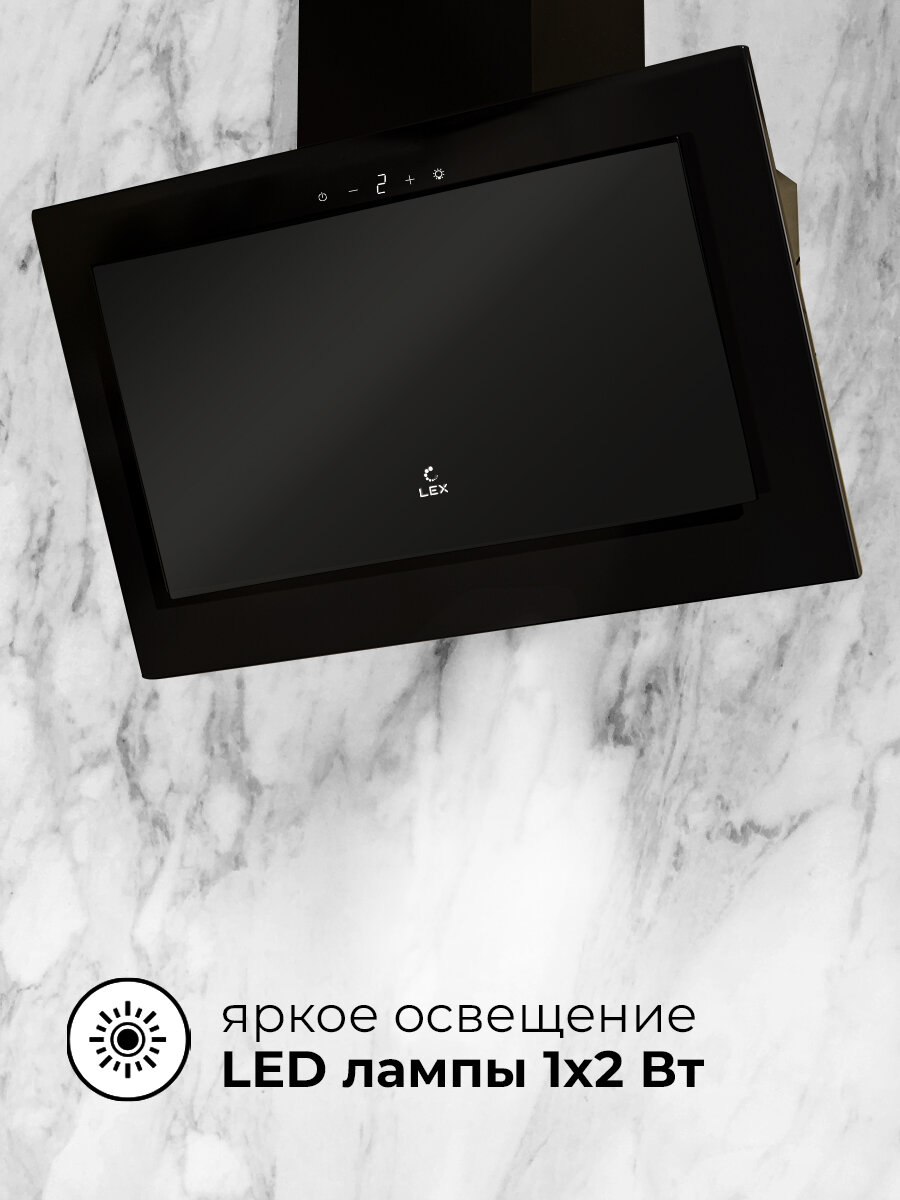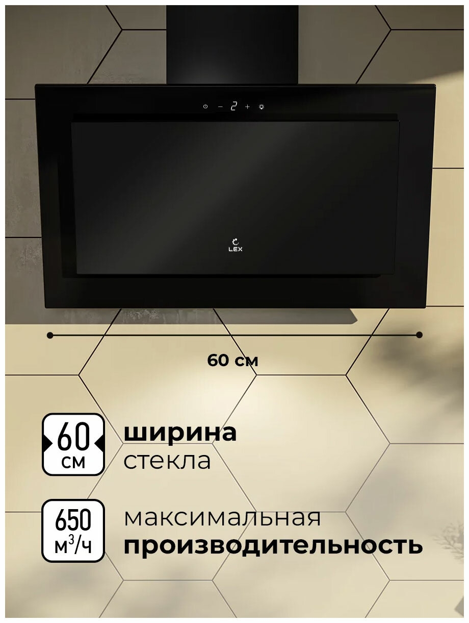 Наклонная кухонная вытяжка LEX MIO GS 600 BLACK 60 см отделка: стекло сенсорное управление LED лампы белый.