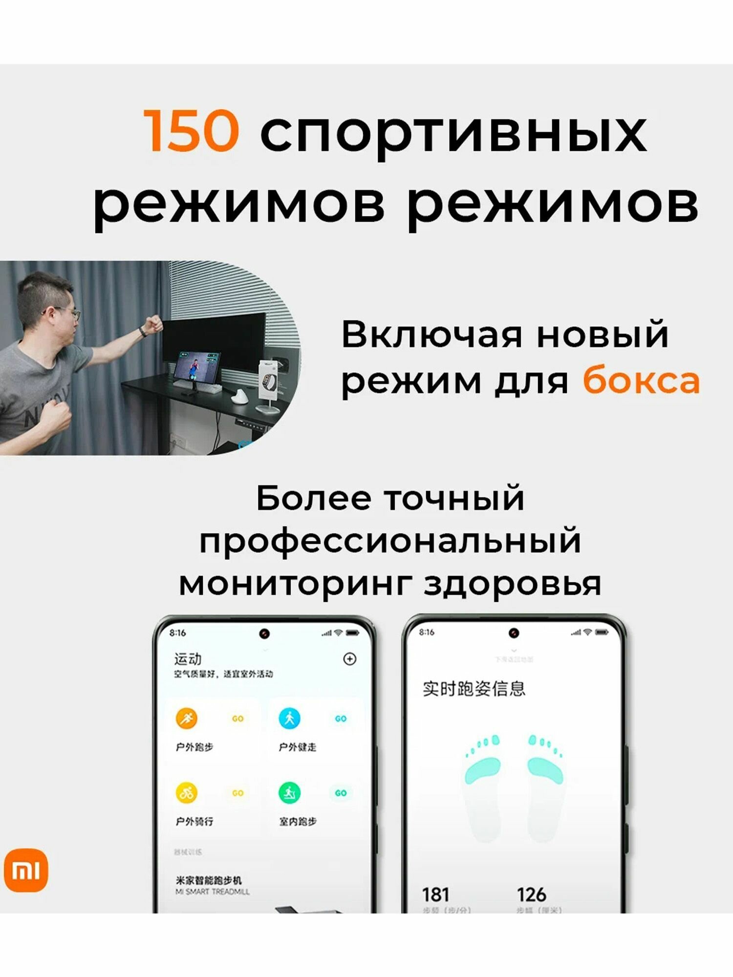 Умный фитнес-браслет с часами. Встроенные биодатчики — отслеживают пульс и более 150 видов активности: от бега до единоборств. Изогнутый AMOLED-дисплей — с диагональю 1.62 дюйма и частотой обновления 60 Гц. Можно подключиться к смартфону при помощи Bluetooth, чтобы принимать сообщения и вызовы напрямую с часов. Функция Always-On Display — отображает время с заблокированным экраном. Режим Running bean фиксирует 13 видов данных о беге — частота и длина шага, сила удара о землю и другие. Водонепроницаемые — можно погружаться на глубину до 50 метров. Заряда батареи хватит на 16 дней стандартной работы, при активном использовании — на 10 дней. Унисекс — подходят как для мужчин, так и для женщин.