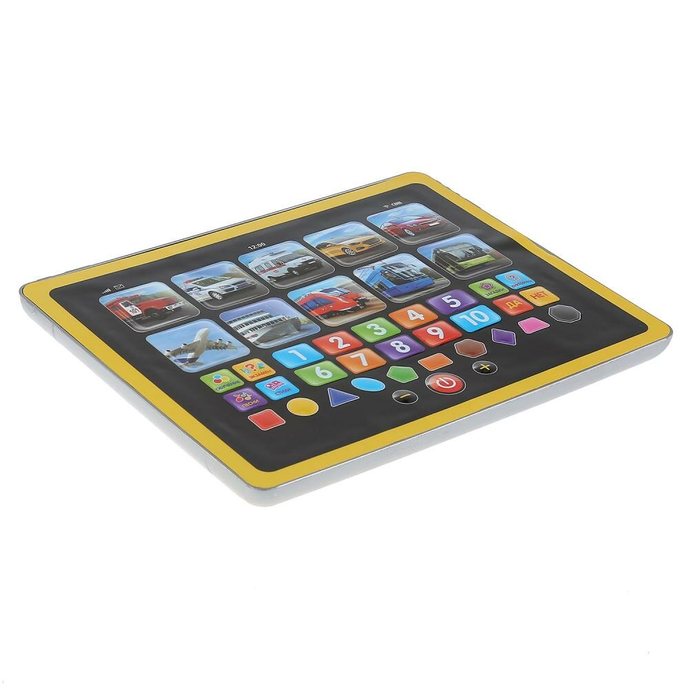 Обучающий сенсорный планшет Всё о транспорте обязательно понравится вашему ребёнку: 50 вопросов и игр, 30 стихов и загадок, учим цифры, формы и виды транспорта, кнопки вкл./выкл., регулировки громкости. Игрушка-планшет креативный, интересный и полезный подарок для развития и игры. Малыш познакомится с разными видами транспорта, выучит формы и цифры. Игра на планшете способствует расширению кругозора и развивает: звуковое восприятие и музыкальный слух, память, мелкую моторику, фантазию. Размер: 19 х 24 х 2 см. Укомплектовано 3 батарейками типа АА. Рекомендовано детям от 3-х лет.