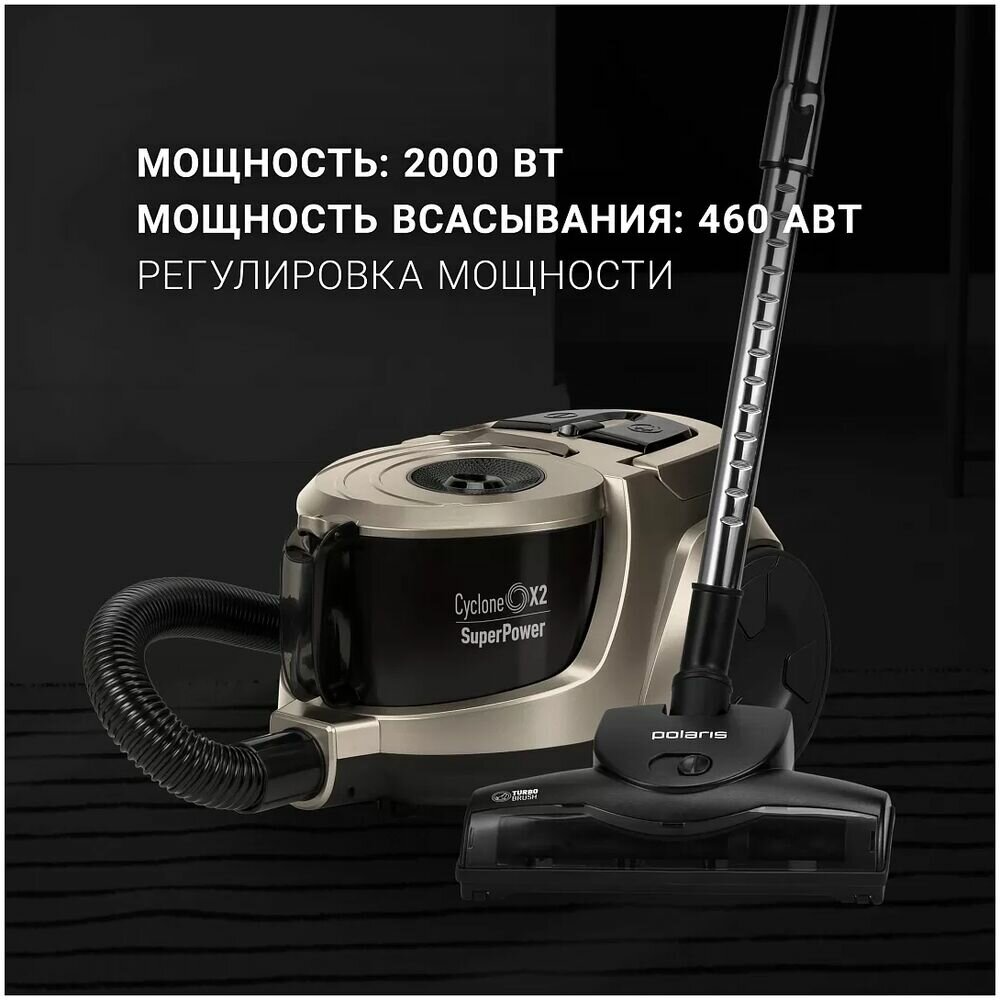 Пылесос Polaris PVC 2031 RUS с мощностью всасывания 460 Вт позволяет поддерживать чистоту в доме. Сбор мусора выполняется в пластиковый контейнер объемом 2.7 л, который при необходимости извлекается и очищается. Фильтр HEPA 12 задерживает до 99.5% пыли и аллергенов.Турбощетка с вращающимся роликом позволяет избавляться от мусора, шерсти животных и волос. Дополнительно в комплекте с Polaris PVC 2031 RUS поставляются комбинированная насадка пол/ковер, щетка для мягкой мебели и узкая насадка для уборки в труднодоступных местах. Прорезиненные колеса гарантируют простое перемещение и не оставляют царапины на гладких напольных покрытиях. Гибкий шланг и телескопическая трубка с регулировкой длины повышают комфорт в процессе уборки.