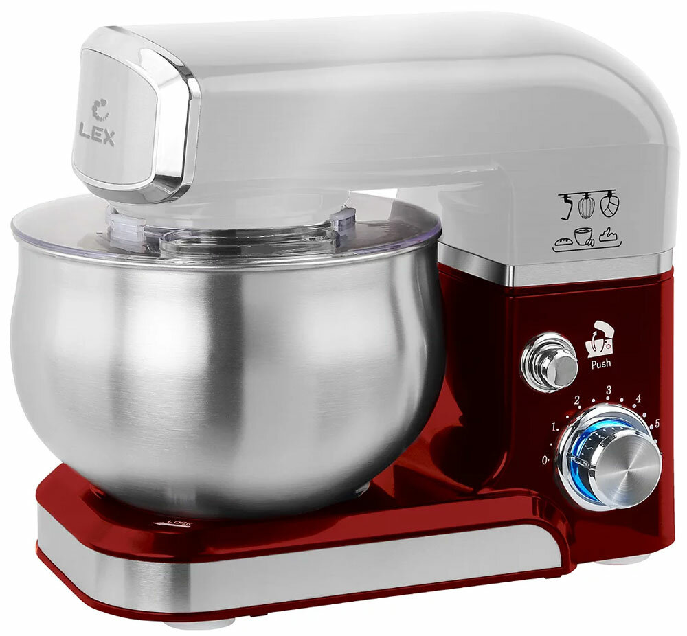 миксер планетарный LEX LXMX4113 1000Вт чаша 35л серебристый/бордовый (LXMX 4113)