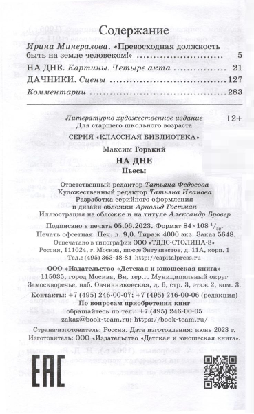 Книга: На дне. Пьесы (Горький Максим); Детская и юношеская книга, 2023