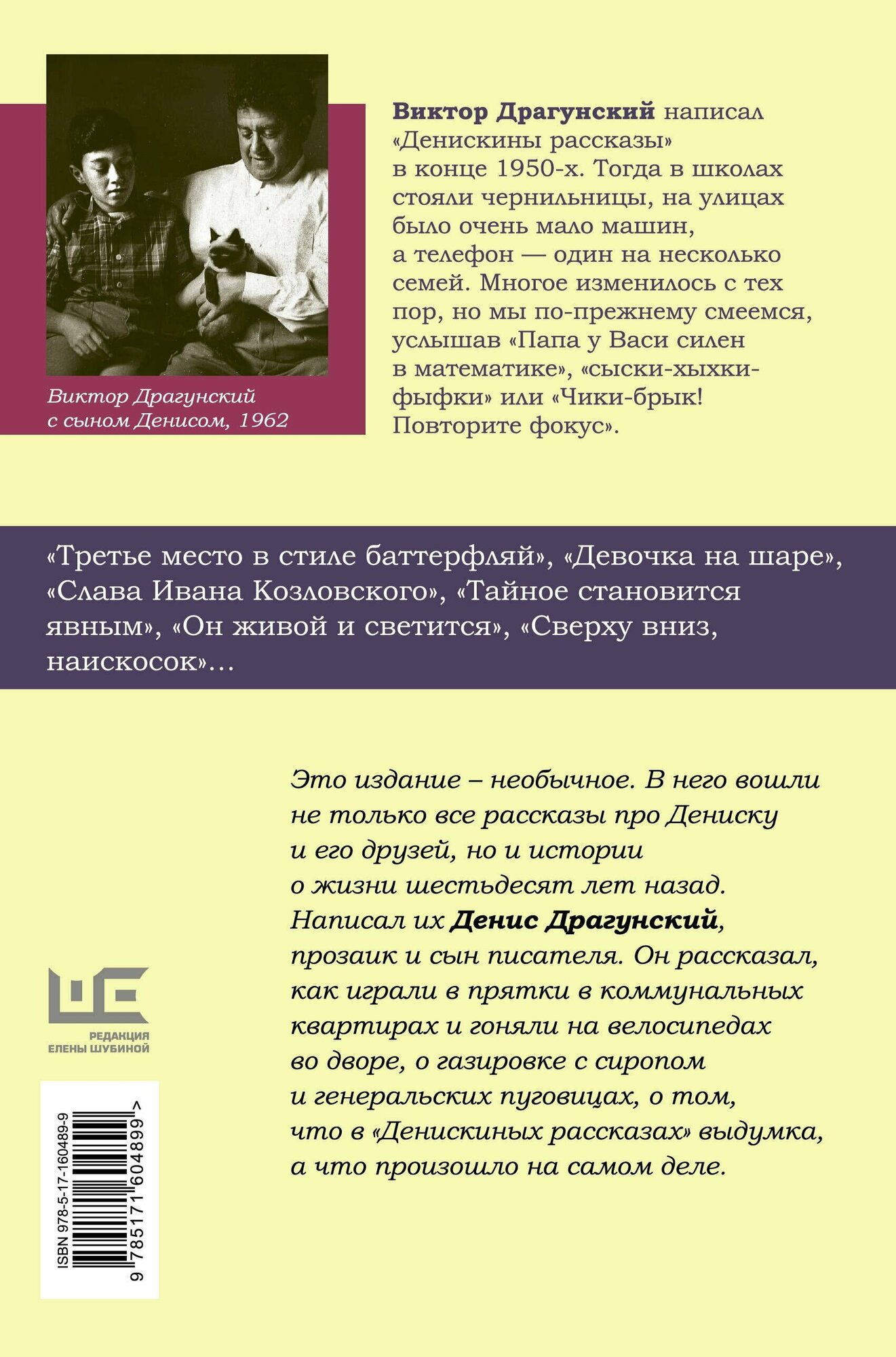Виктор Драгунский написал "Денискины рассказы" в конце 1950-х. С тех пор многое изменилось, но мы по-прежнему смеемся, услышав "Папа у Васи силен в математике". Это издание — необычное. В него вошли не только рассказы про Дениску и его друзей, но и истории о жизни шестьдесят лет назад. Их написал Денис Драгунский, прозаик и сын писателя. Он рассказал, как играли в прятки в коммунальных квартирах и гоняли на велосипедах во дворе, о газировке с сиропом и генеральских пуговицах, о том, что в "Денискиных рассказах" выдумка, а что произошло на самом деле.