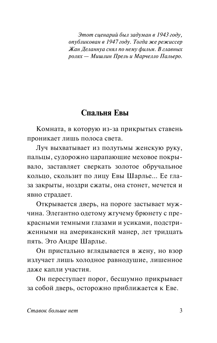 Роман-пьеса "Ставок больше нет" был написан Сартром еще в 1943 году, но опубликован только по окончании войны, в 1947 году.