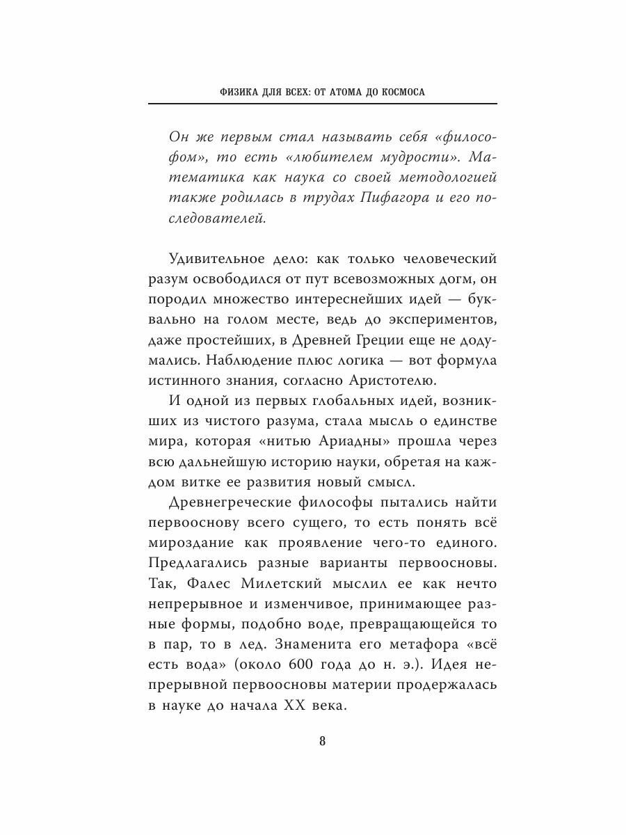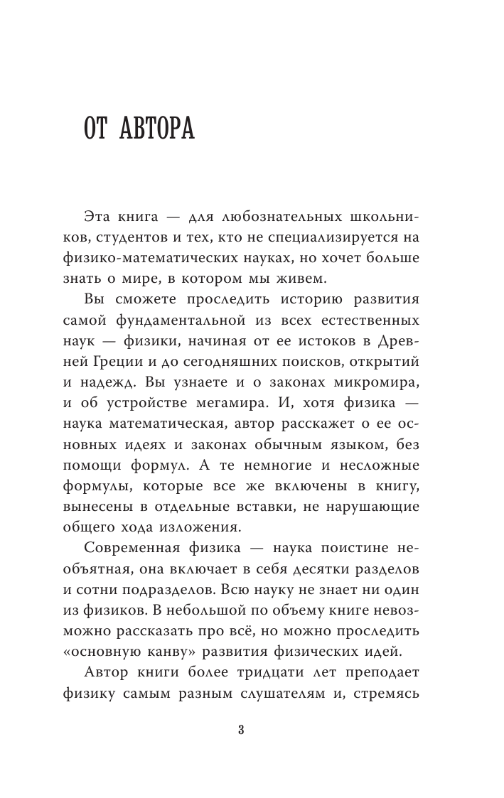 Физика позволила нам получить ответы на самые разнообразные вопросы. Что такое "шумовое загрязнение", почему одни звуки разрушают наш организм, а другие — лечат? Кто постареет быстрее: человек на Земле или космонавт, летящий к другой планете? Откуда берется вездесущая радиация и как она на нас воздействует? Какие цвета нужно смешать, чтобы получить белый? Какие "ингредиенты" нужны для создания Вселенной: обычная и темная материя, темная энергия — что еще?
