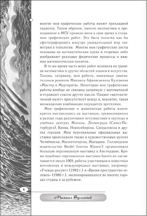 Книга иллюстрирована живописными работами известного математика и автора "Новой хронологии" А.Т. Фоменко — математика и литература слились воедино и предстали перед нами в глубоко художественном графическом исполнении. Его работы многократно участвовали в международных выставках и выставлялись в художественных музеях. Художник и математик передал нам свое уникальное видение великого романа, не ограничивая себя рамками какого-либо жанра.