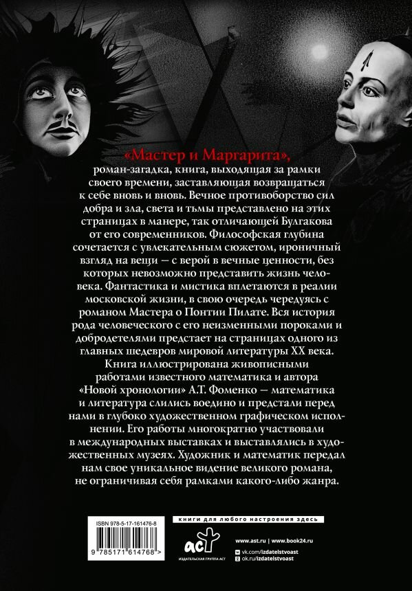 "Мастер и Маргарита", роман-загадка, книга, выходящая за рамки своего времени, заставляющая возвращаться к себе вновь и вновь. Вечное противоборство сил добра и зла, света и тьмы представлено на этих страницах в манере, так отличающей Булгакова от его современников. Философская глубина сочетается с увлекательным сюжетом, ироничный взгляд на вещи — с верой в вечные ценности, без которых невозможно представить жизнь человека. Фантастика и мистика вплетаются в реалии московской жизни, в свою очередь чередуясь с романом Мастера о Понтии Пилате. Вся история рода человеческого с его неизменными пороками и добродетелями предстает на страницах одного из главных шедевров мировой литературы XX века.