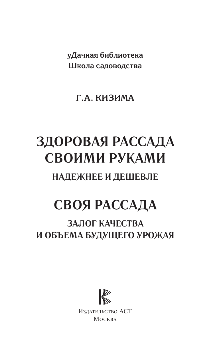 Здоровая рассада своими руками. Надежнее и дешевле (Галина Александровна Кизима); АСТ, 2023