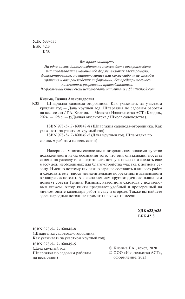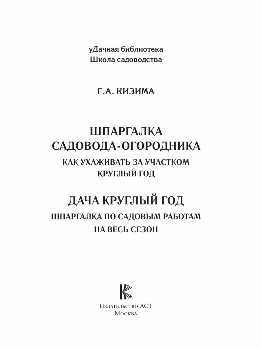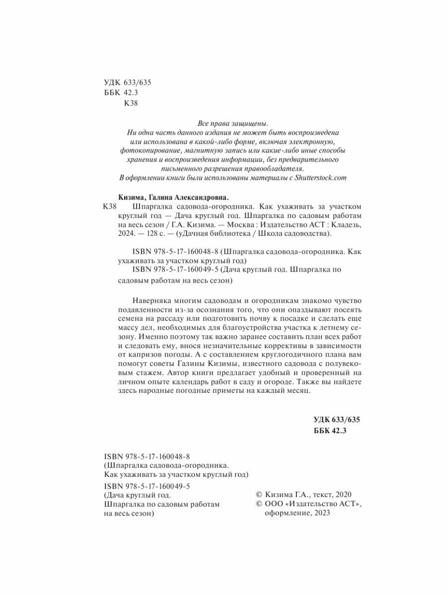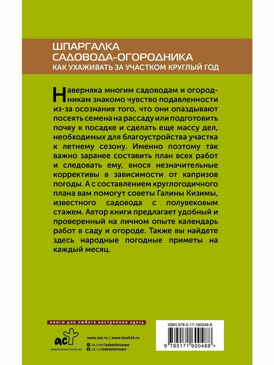 Шпаргалка садовода-огородника. Как ухаживать за участком круглый год (Галина Александровна Кизима); АСТ, 2023