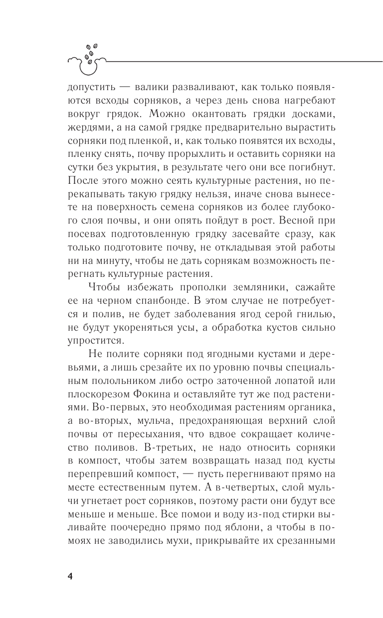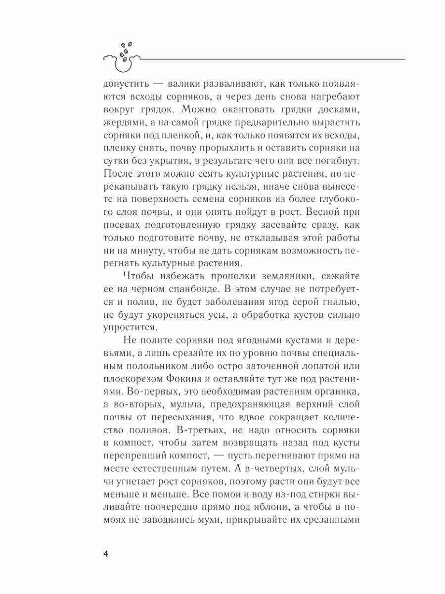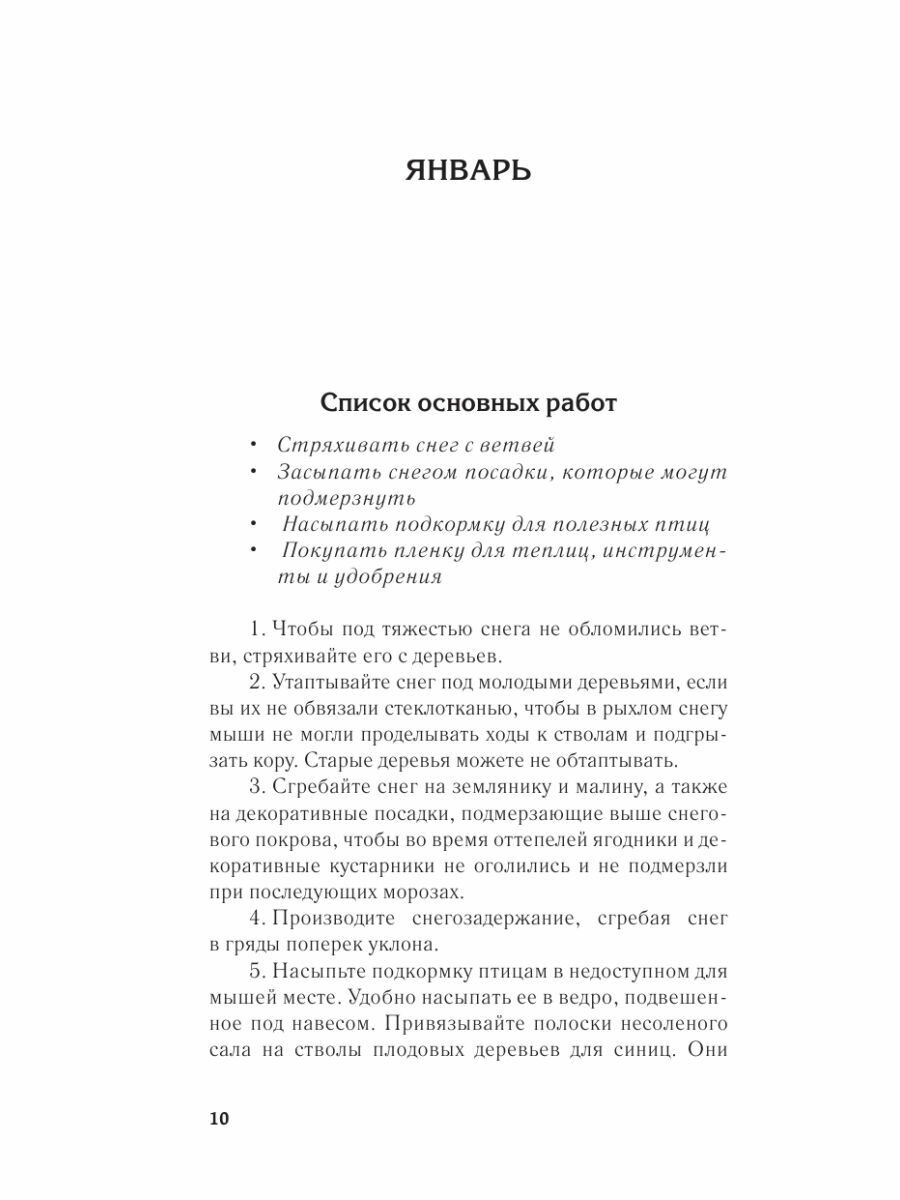 Наверняка многим садоводам и огородникам знакомо чувство подавленности из-за осознания того, что они опаздывают посеять семена на рассаду или подготовить почву к посадке и сделать еще массу дел, необходимых для благоустройства участка к летнему сезону. Именно поэтому так важно заранее составить план всех работ и следовать ему, внося незначительные коррективы в зависимости от капризов погоды. А с составлением круглогодичного плана вам помогут советы Галины Кизимы, известного садовода с полувековым стажем. Автор книги предлагает удобный и проверенный на личном опыте календарь работ в саду и огороде. Также вы найдете здесь народные погодные приметы на каждый месяц.