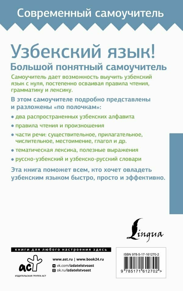 Выучите узбекский язык с помощью пособия "Узбекский язык! Большой понятный самоучитель. Всё подробно и “по полочкам”".